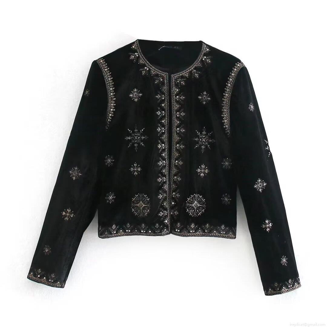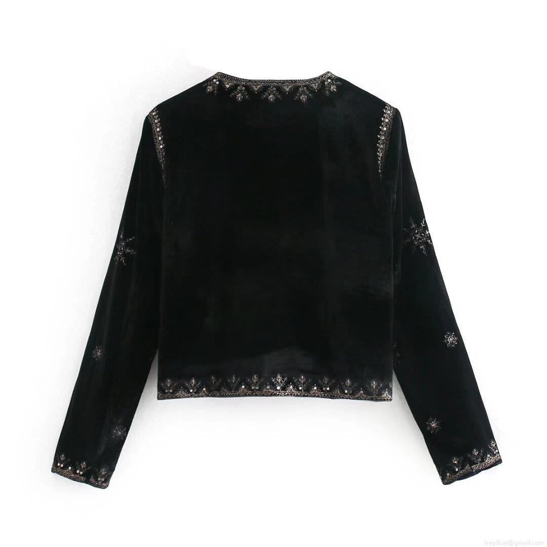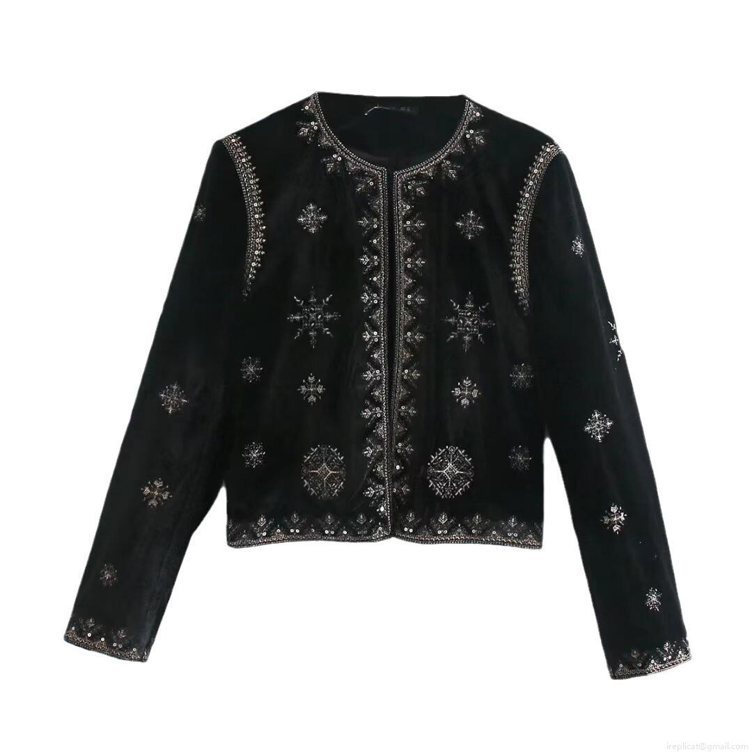 • Women's Elegant Black Velvet Cropped Jacket With Heavy Embroidery And Sequins Vintage Luxury Long Sleeve Party Outerwear Fashion Coat