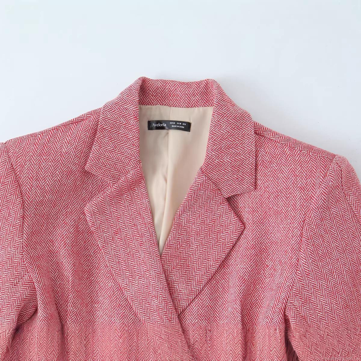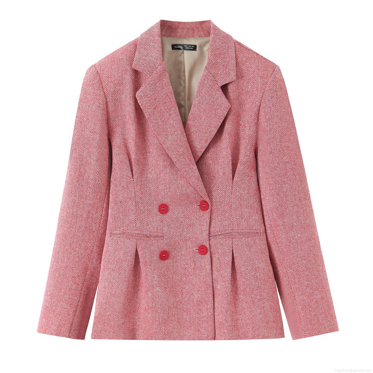 • Women's Elegant Herringbone Tweed Blazer Jacket Double-Breasted Long Sleeve Suit Coat With Flap Pockets Slim Fit Outerwear For Office Streetwear