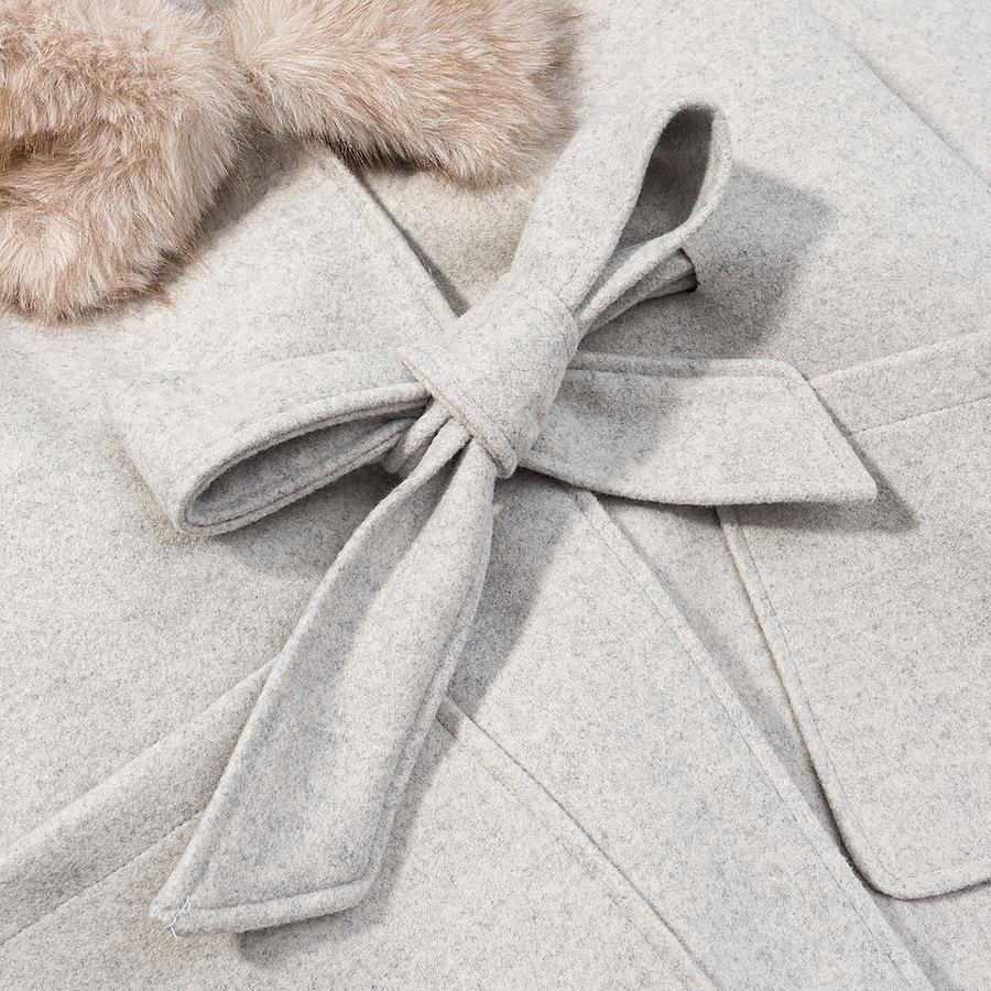 Solid Color, Fur Collar, Belt, Bow Tie, Wool Cuffs