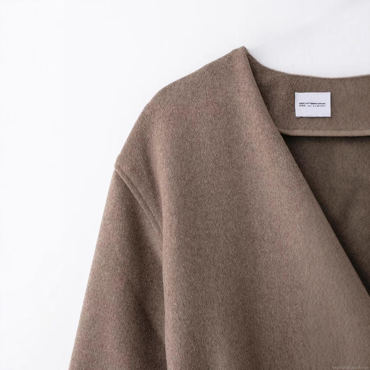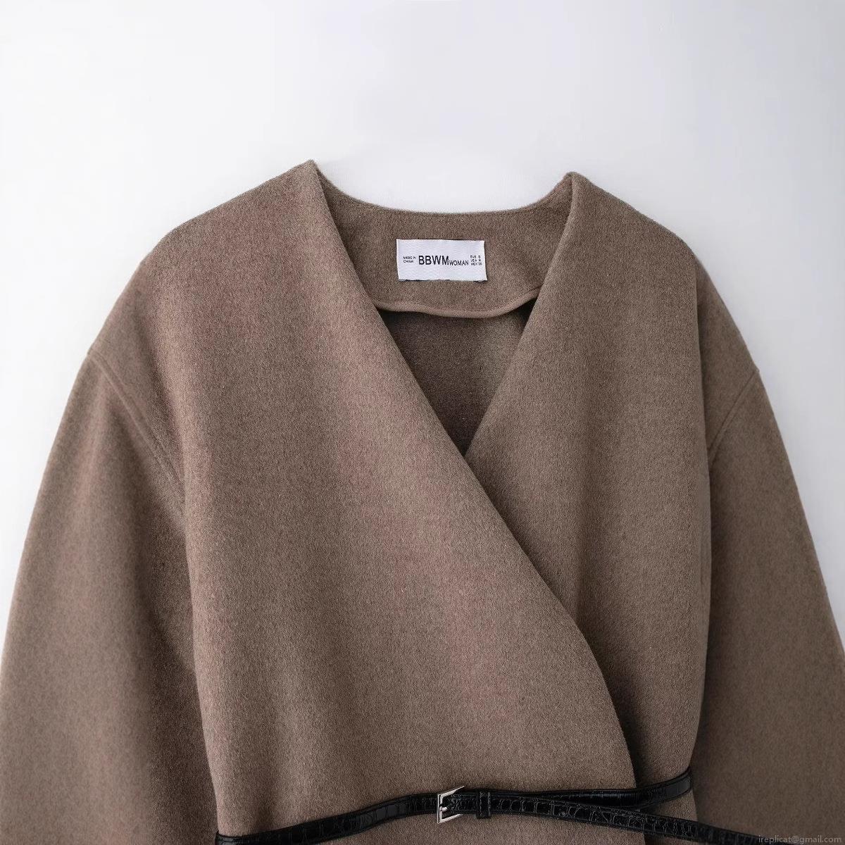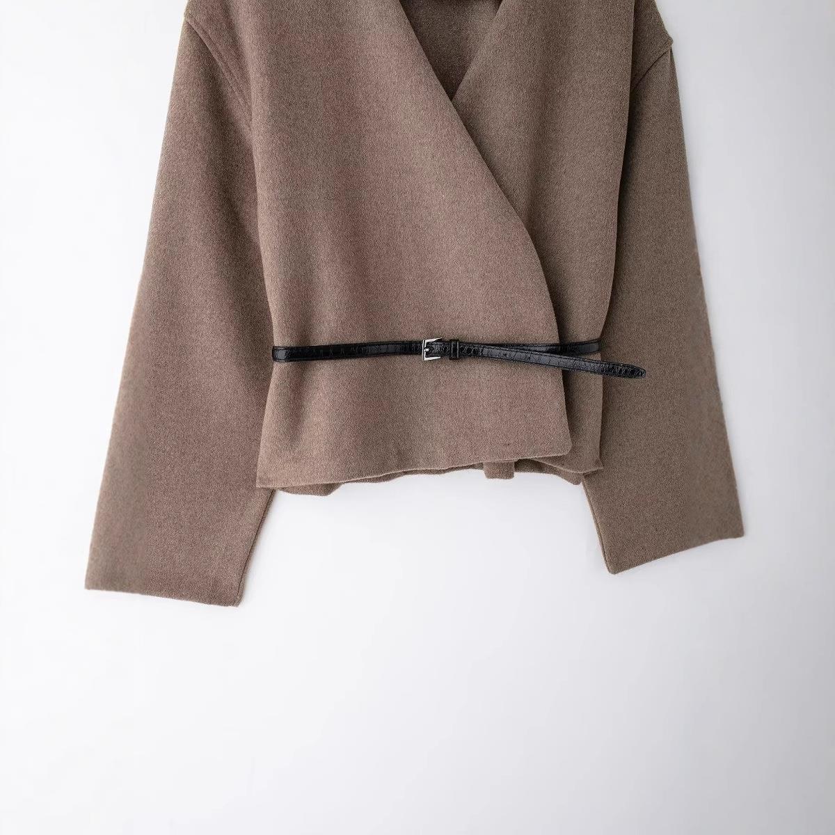 • Women's Elegant Short Woolen Coat With Belt V-Neck Long Sleeve Faux Wool Jacket Minimalist Solid Color Outerwear For Fall Winter