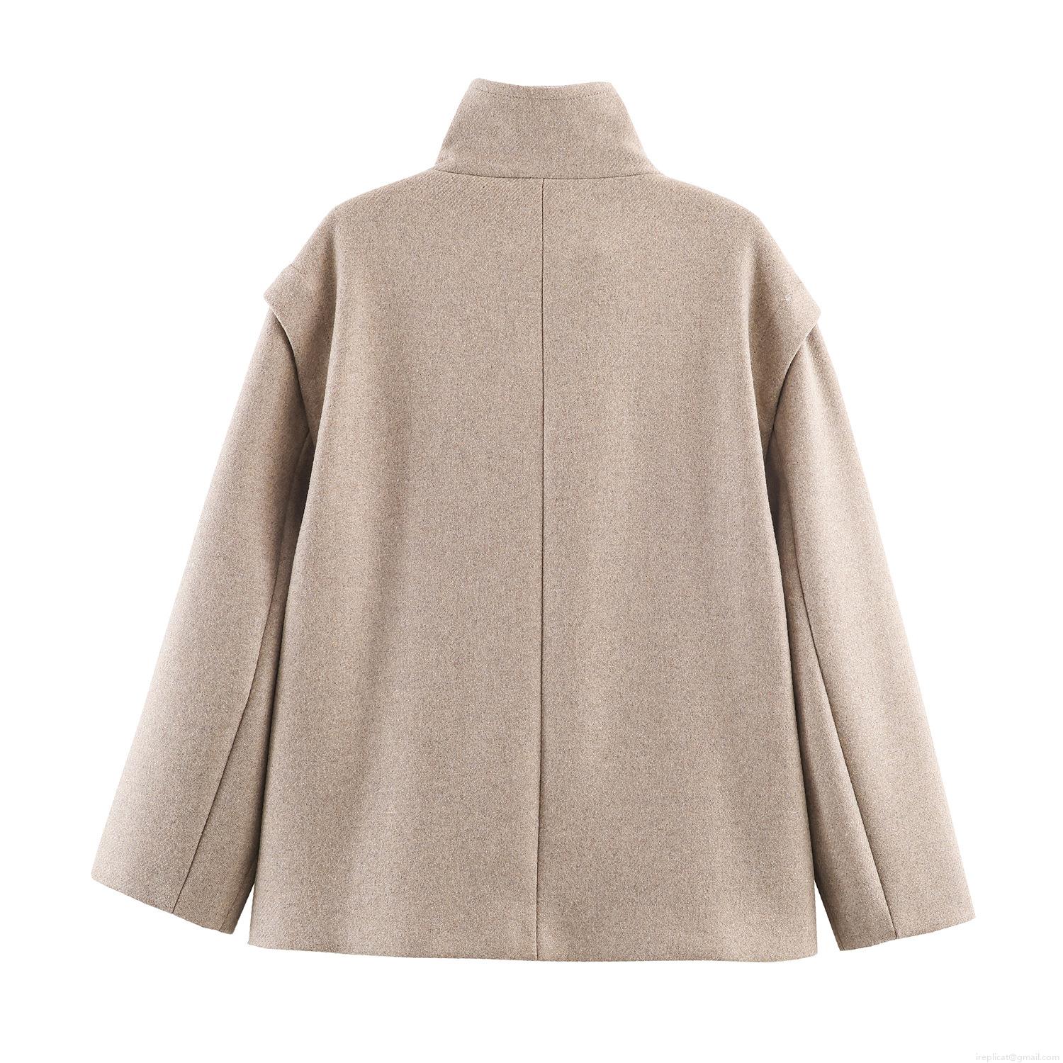• Women's Elegant Solid Color Woolen Coat Loose Fit Stand Collar Single Breasted Jacket Winter Autumn Warm Commute Office Polyester Blend Long Sleeve Outerwear With Pockets