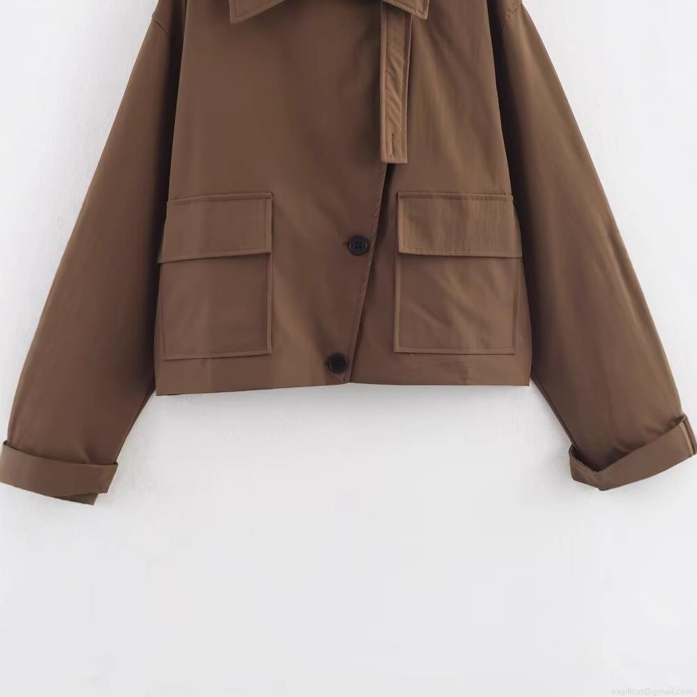 • Women's Fashion Casual Solid Color Lapel Short Trench Coat Jacket With Suede Texture And Pockets For Spring Daily Wear