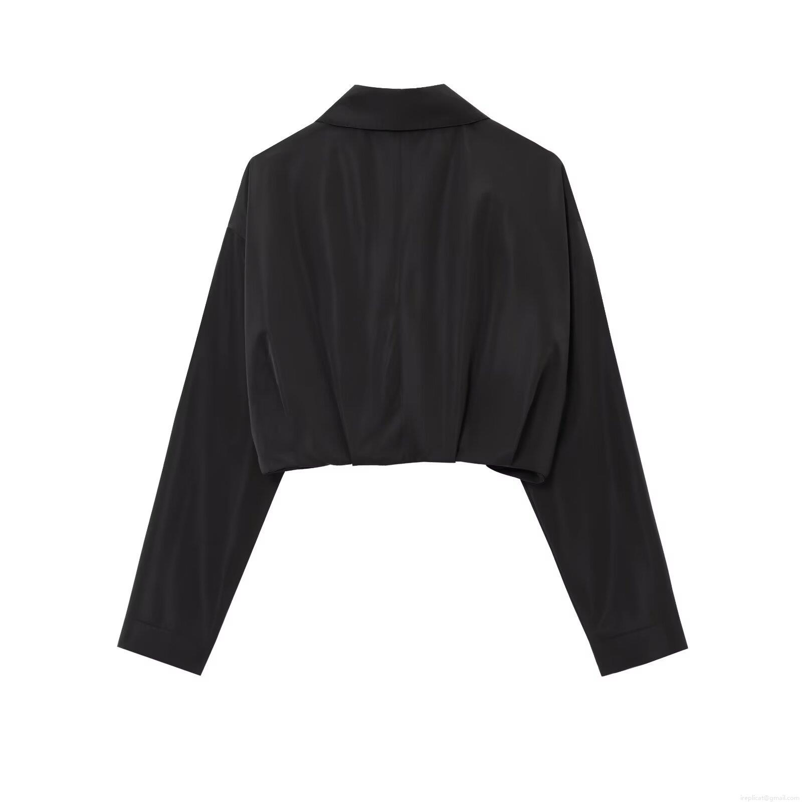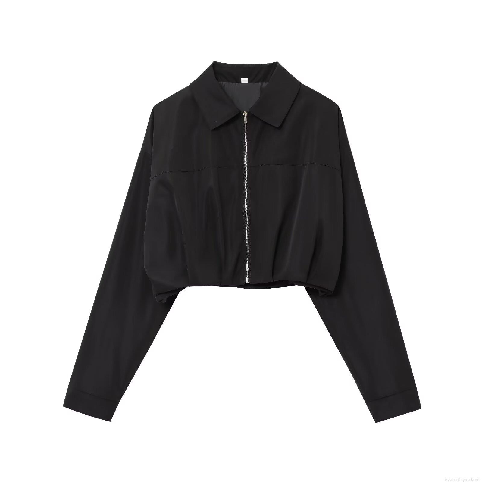 • Women's Fashion Cropped Jacket Long Sleeve Lapel Zipper Up Short Outwear Solid Color Casual Pleated Coat For Spring Autumn