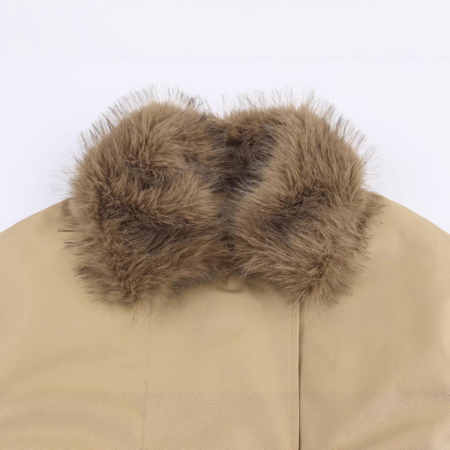 • Women's Fashion Faux Fur Collar Jacket Long Sleeve Zipper Khaki Loose Fit Outerwear For Autumn Winter Casual Streetwear Coat