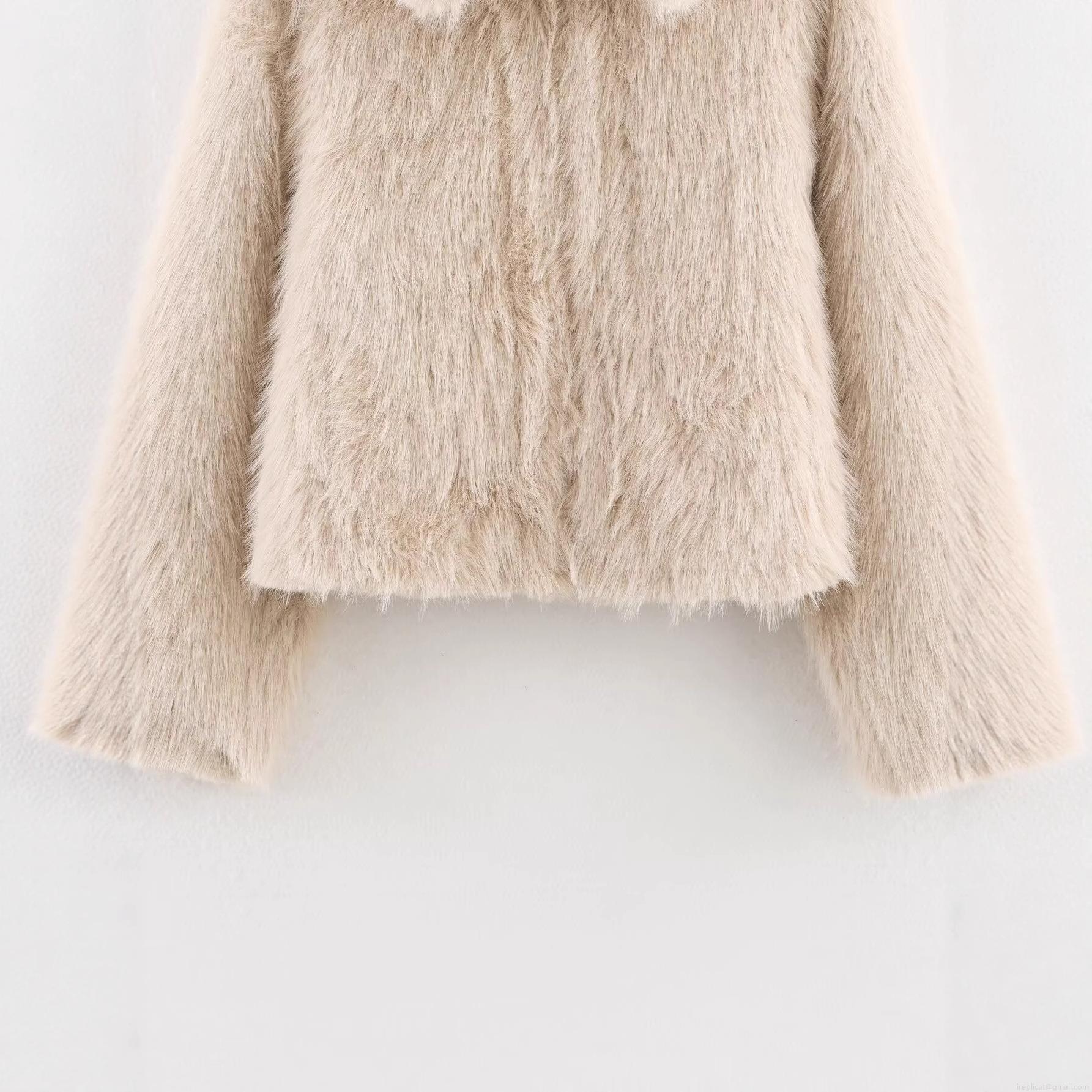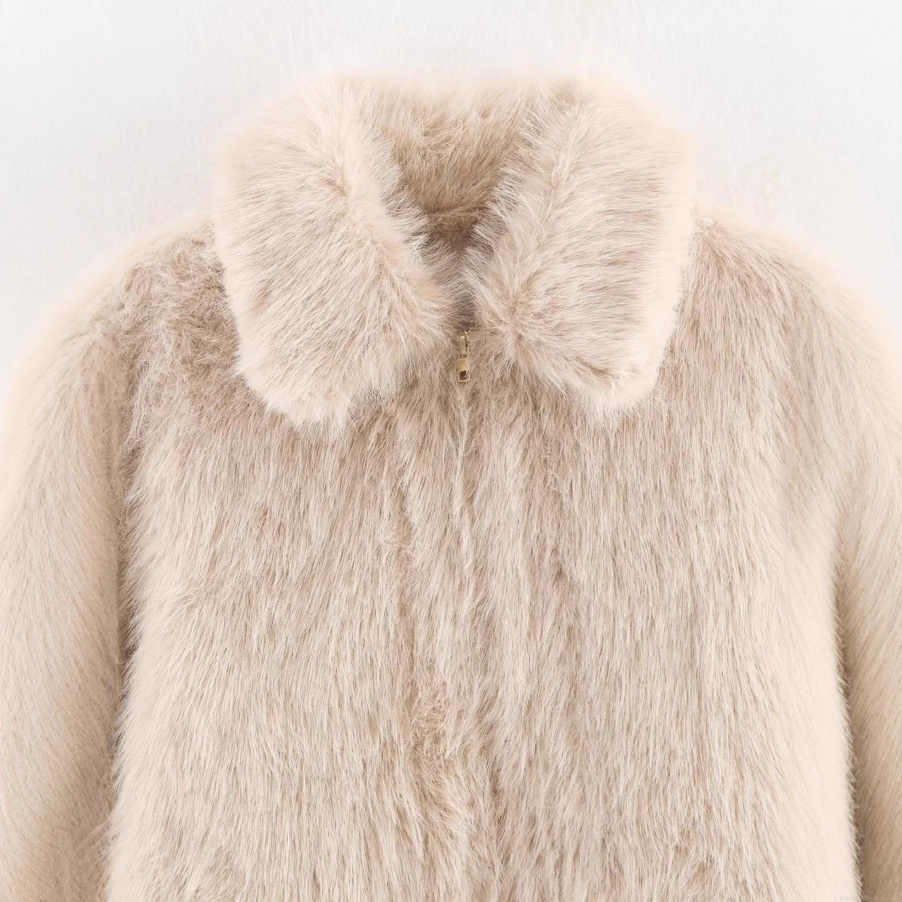 Solid Color, Imitation fur, Metal Zipper, Large Lapel