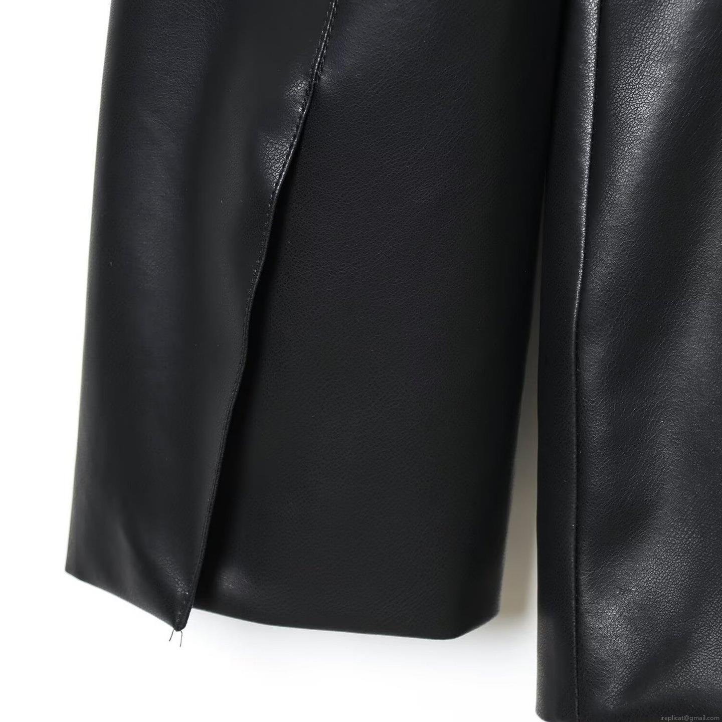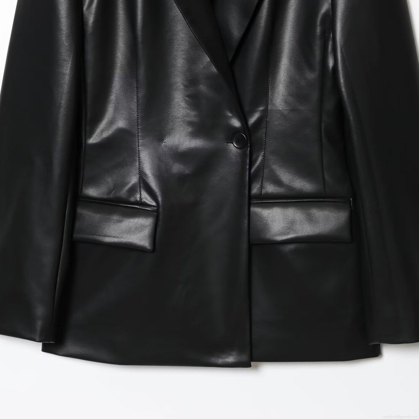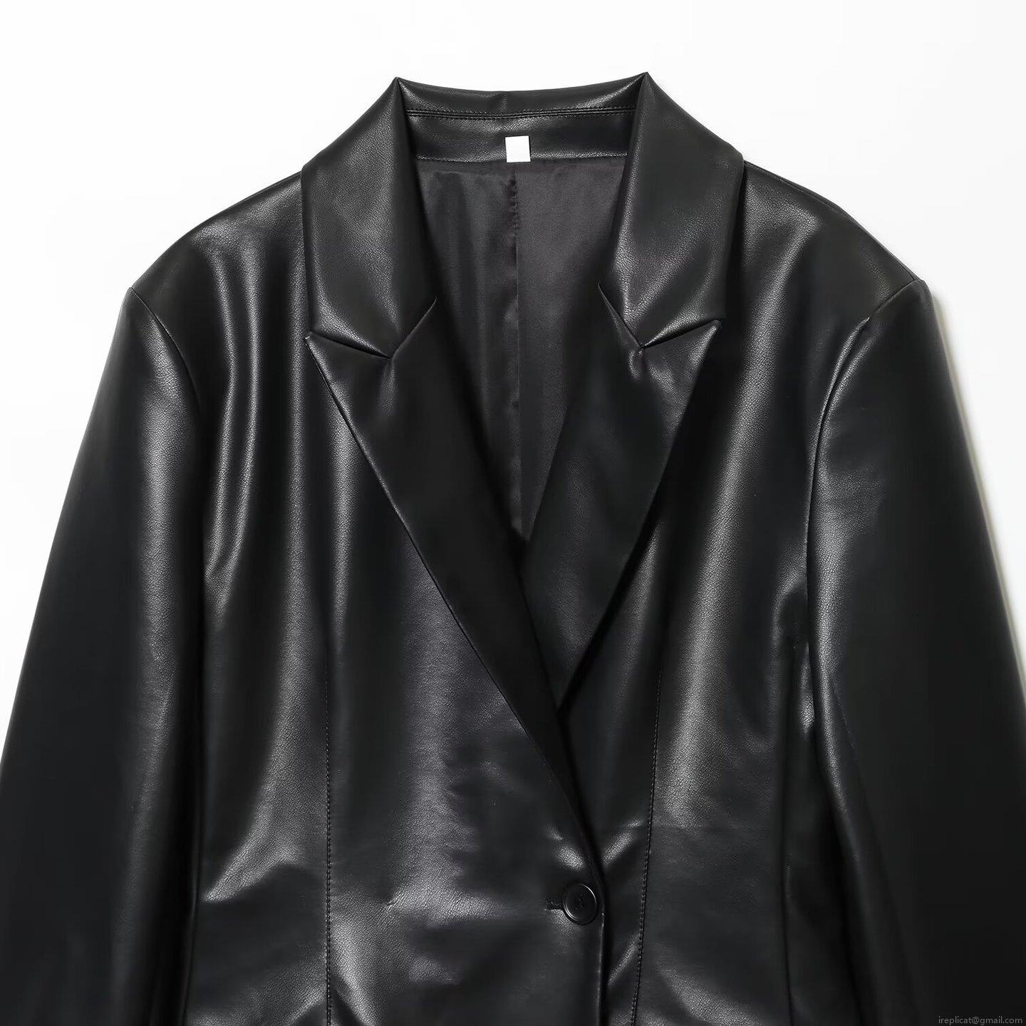 • Women's Fashion Slim Fit PU Faux Leather Blazer Jacket Long Sleeve Solid Color Lapel Suit Coat For Office Autumn Casual Elegant Single Button Streetwear Outwear