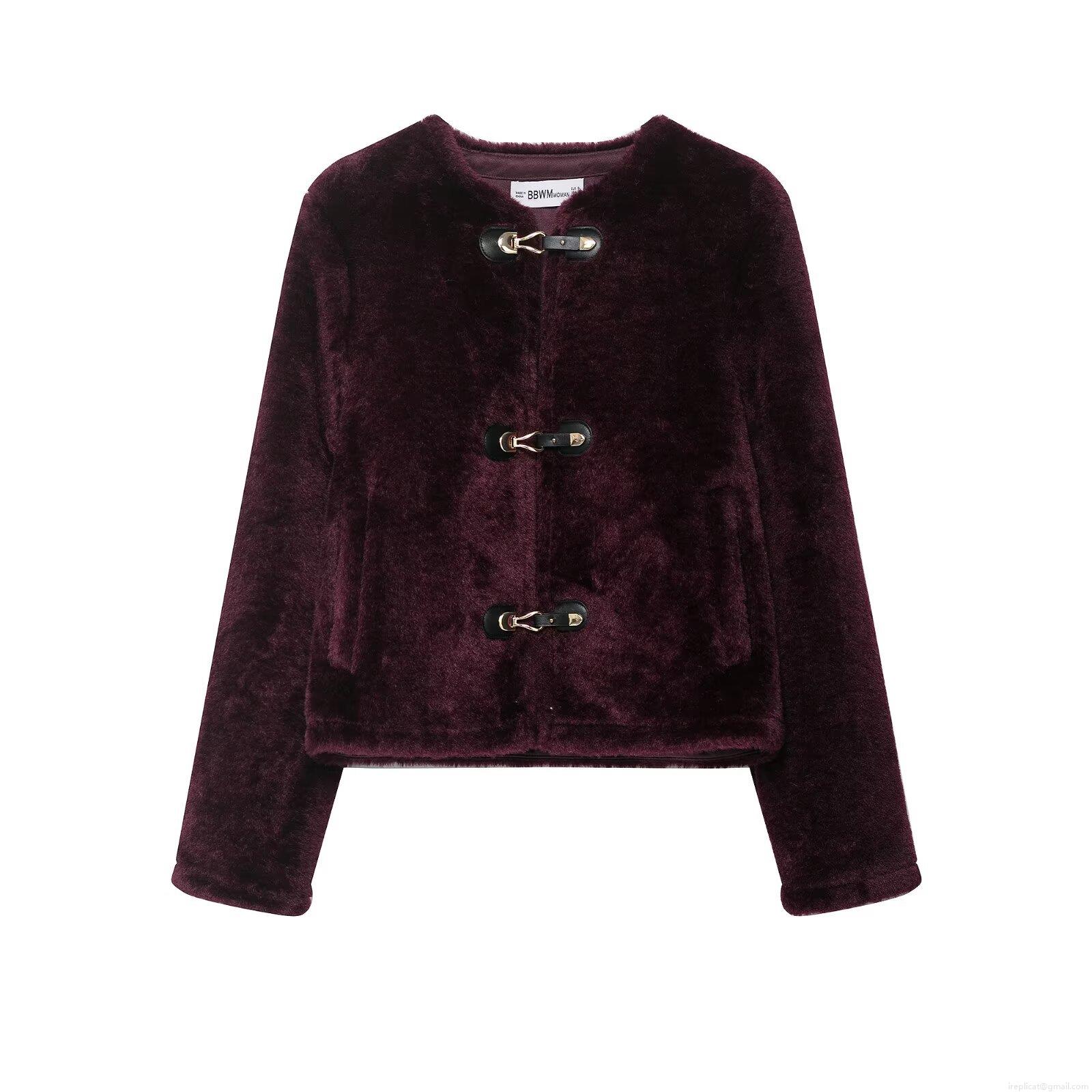 • Women's Faux Fur Fleece Jacket Short Warm Outerwear With Metal Toggles Long Sleeve Round Neck Streetwear Fashion Coat For Autumn Winter