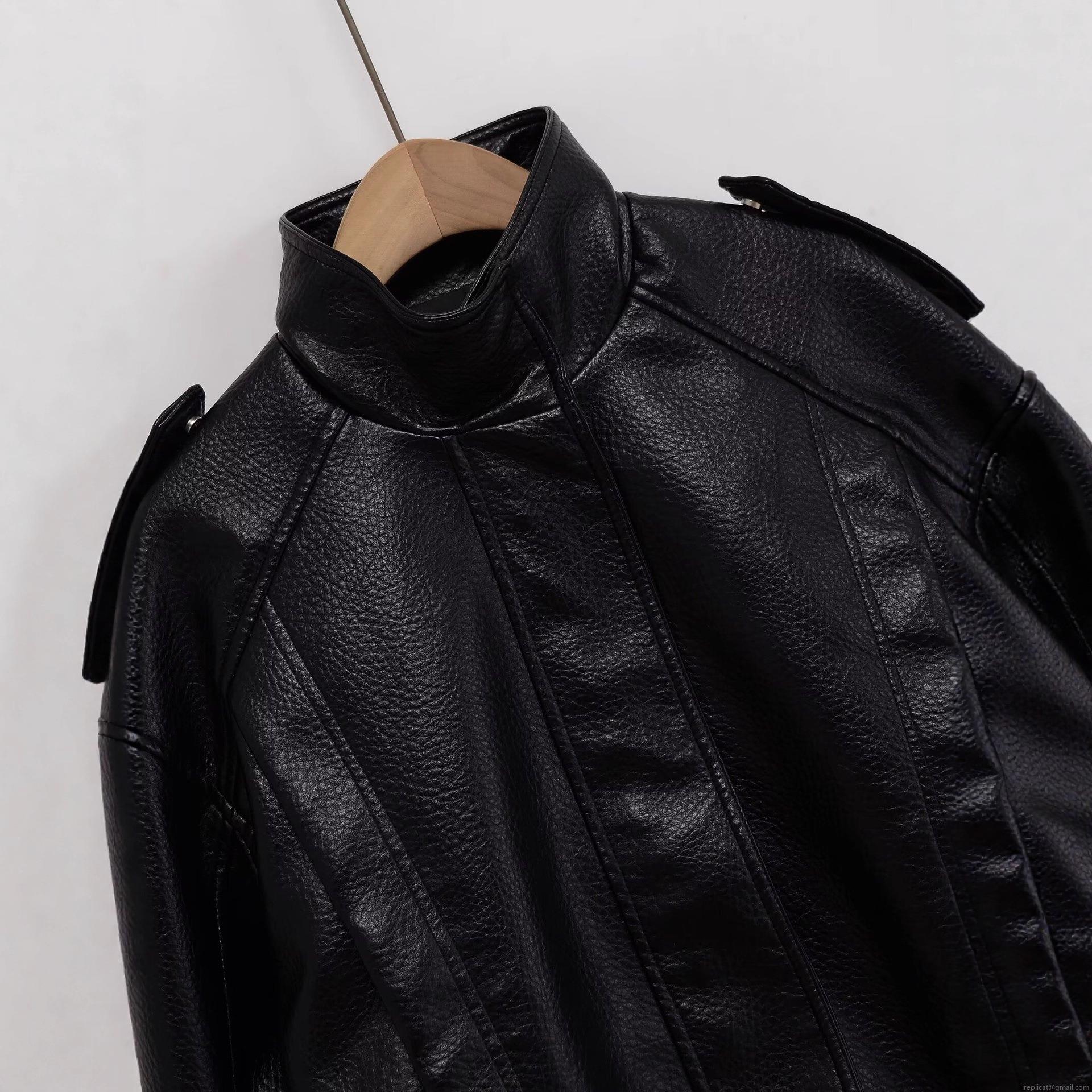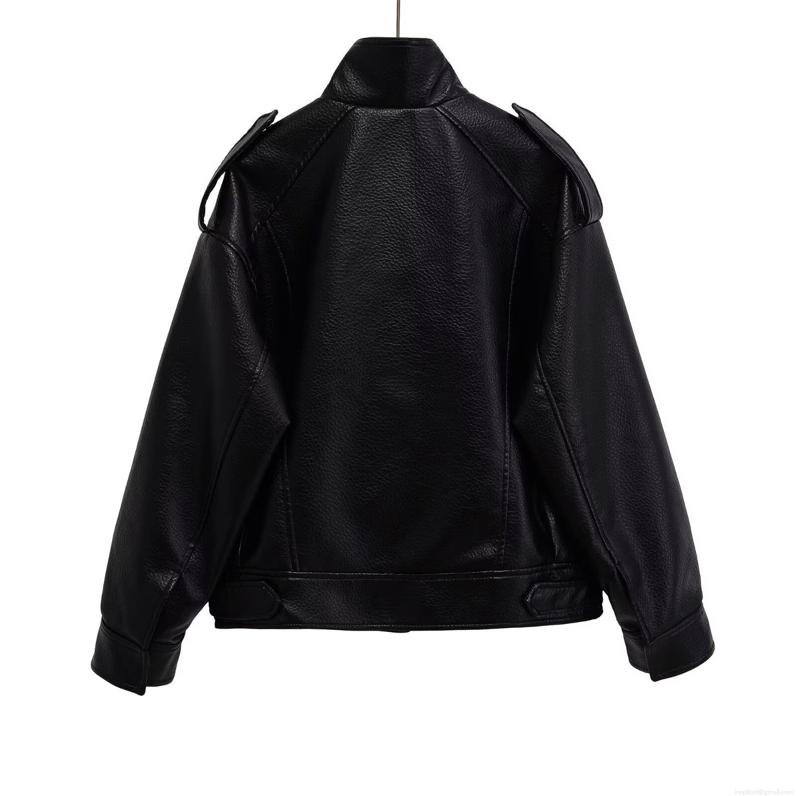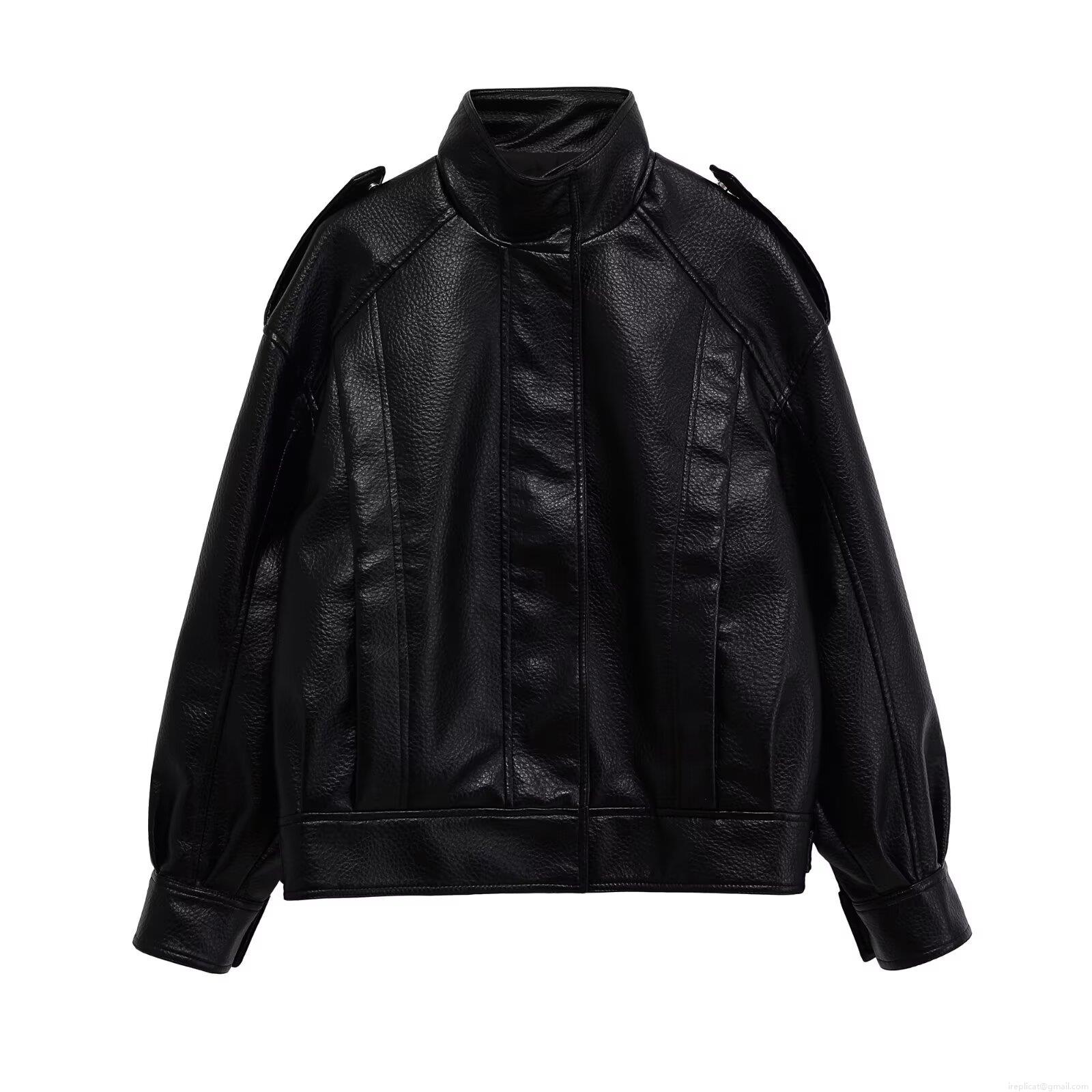 • Women's Faux Leather PU Jacket Stand Collar Long Sleeve Zip Up Solid Black Biker Style Moto Jacket With Pockets Casual Streetwear For Women