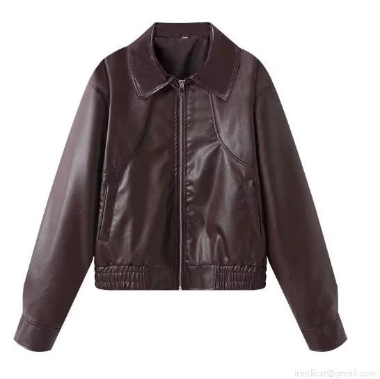 • Women's Faux PU Leather Jacket Casual Loose Long Sleeve Outwear With Zipper Pockets Solid Color Streetwear Short Coat For Women Autumn Winter