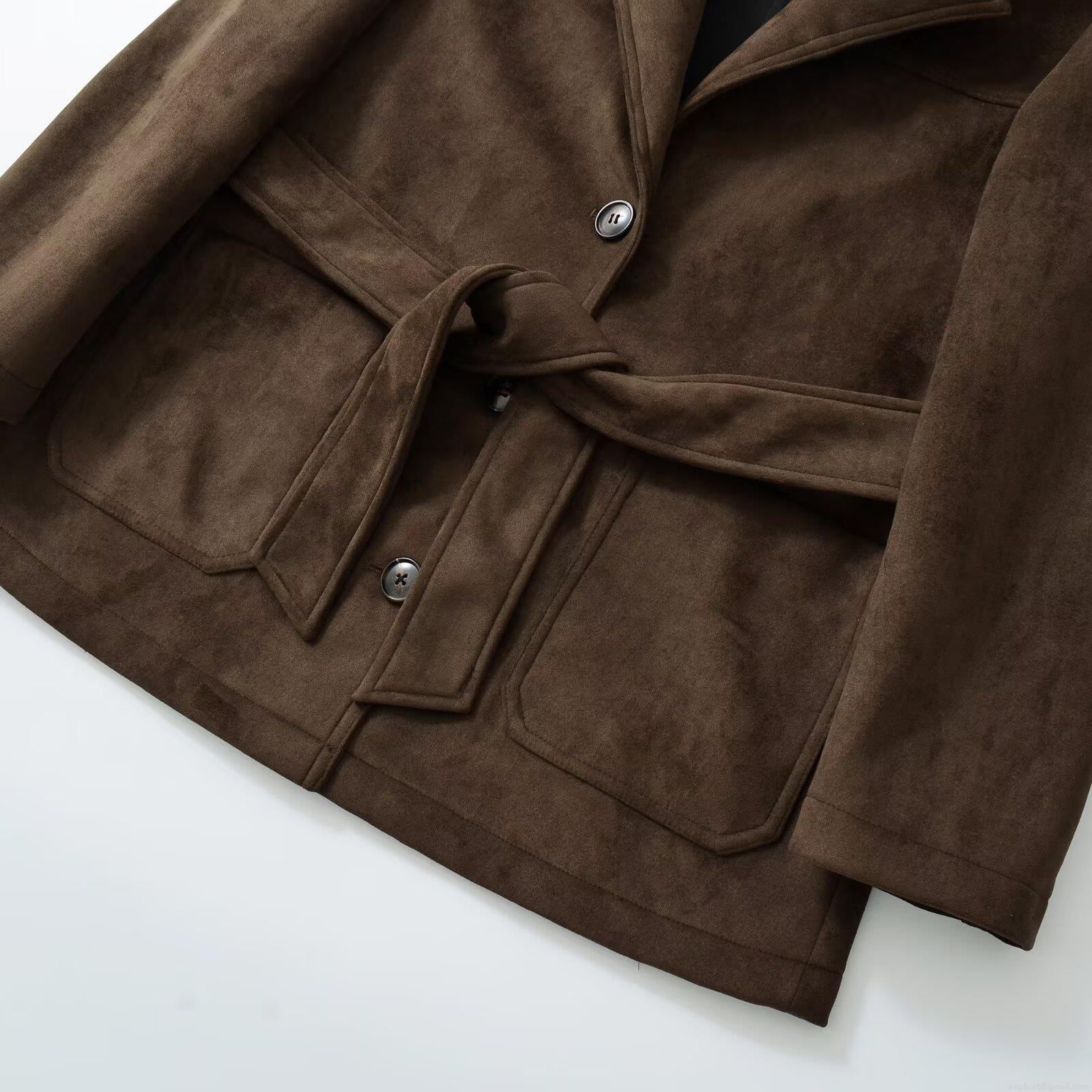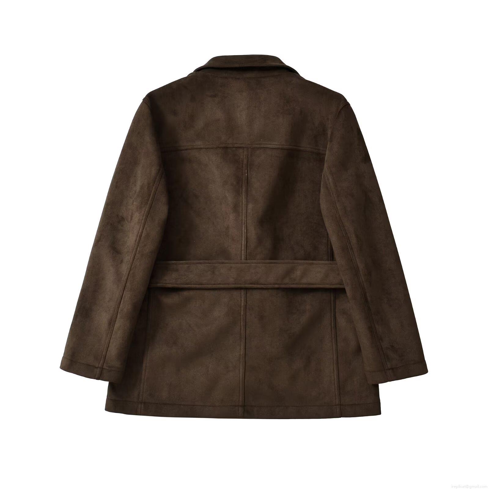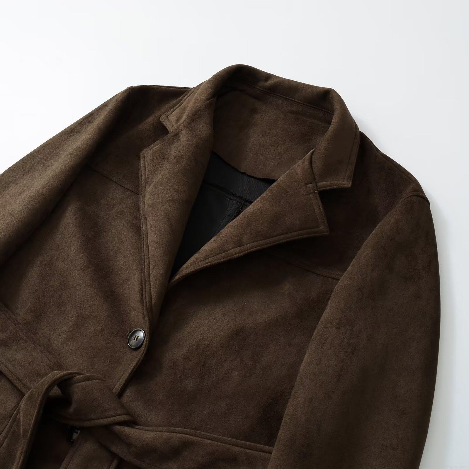 • Women's Faux Suede Mid-Length Jacket With Waist Tie Belt Lapel Single Breasted Long Sleeve Coat For Autumn Winter Casual Streetwear