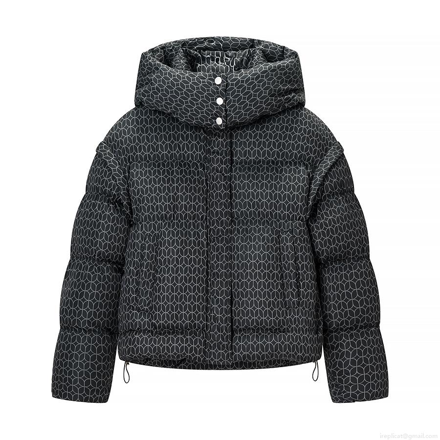 • Women's Geometric Print Hooded Cotton Padded Jacket Autumn Winter Warm Puffer Outerwear With Pockets Streetwear Style For Women