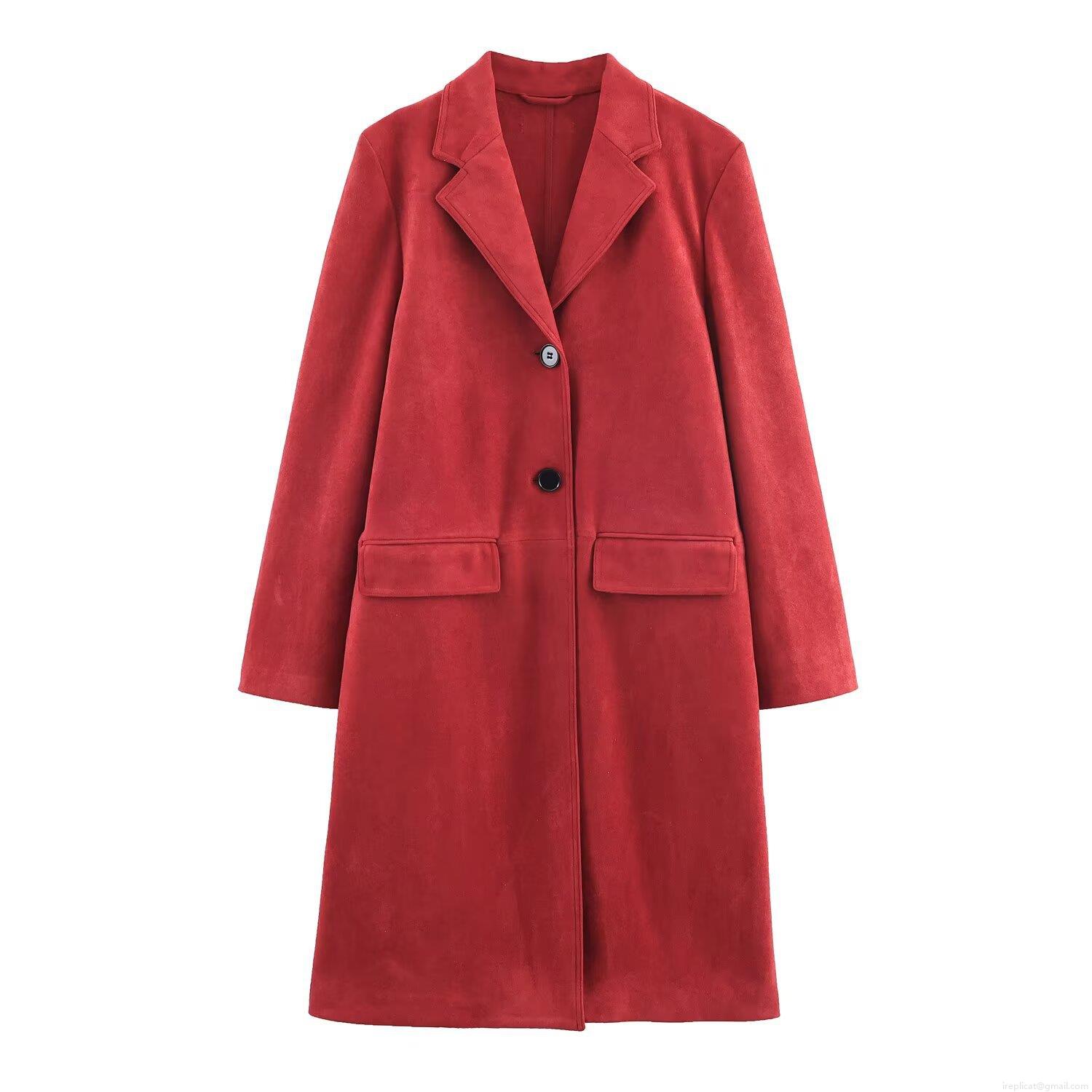 • Women's Long Faux Suede Coat Autumn Winter Notched Lapel Single Breasted Long Sleeve Outwear Loose Fit Streetwear Trench Jacket Overcoat For Ladies