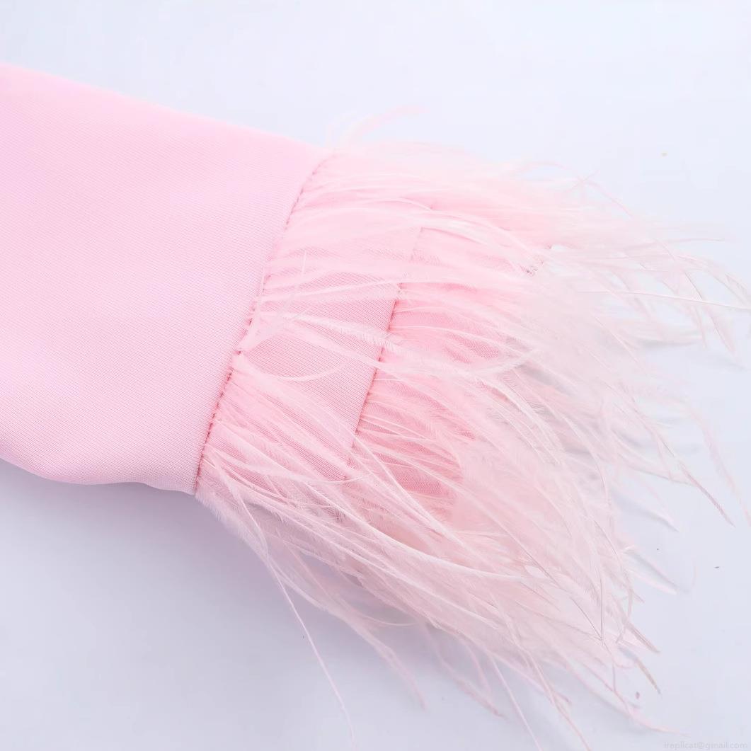 • Women's Loose Pink Blazer Jacket With Feather Trim Cuffs Lapel Long Sleeve Polyester Mid Length Outerwear For Streetwear Party Autumn Fashion