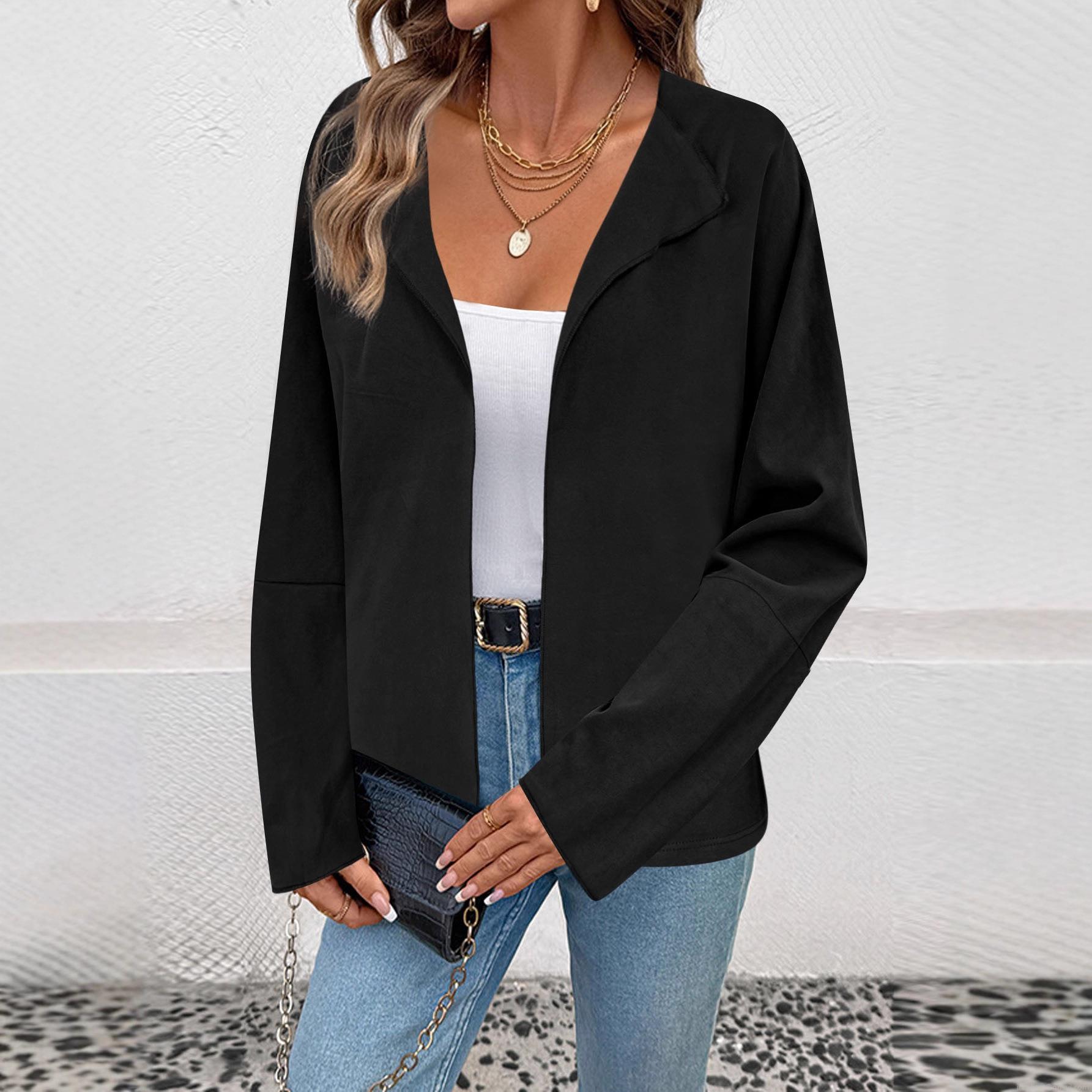 Women's Plus Size Casual Suit-Style Cardigan Jacket Solid Color Open Front Lapel Blazer Long Sleeve Mid-Length Outerwear Coat For Autumn Winter