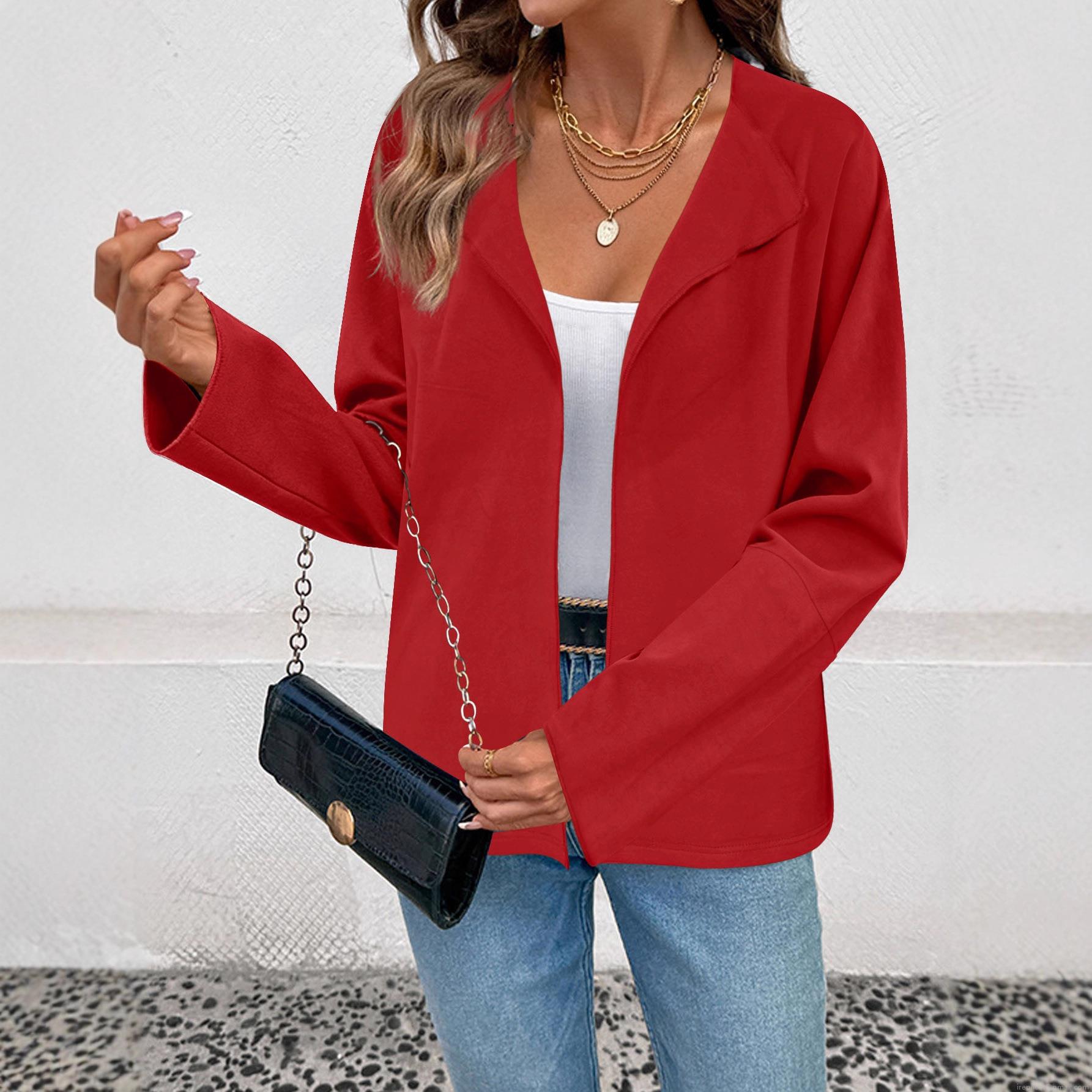• Women's Plus Size Casual Suit-Style Cardigan Jacket Solid Color Open Front Lapel Blazer Long Sleeve Mid-Length Outerwear Coat For Autumn Winter
