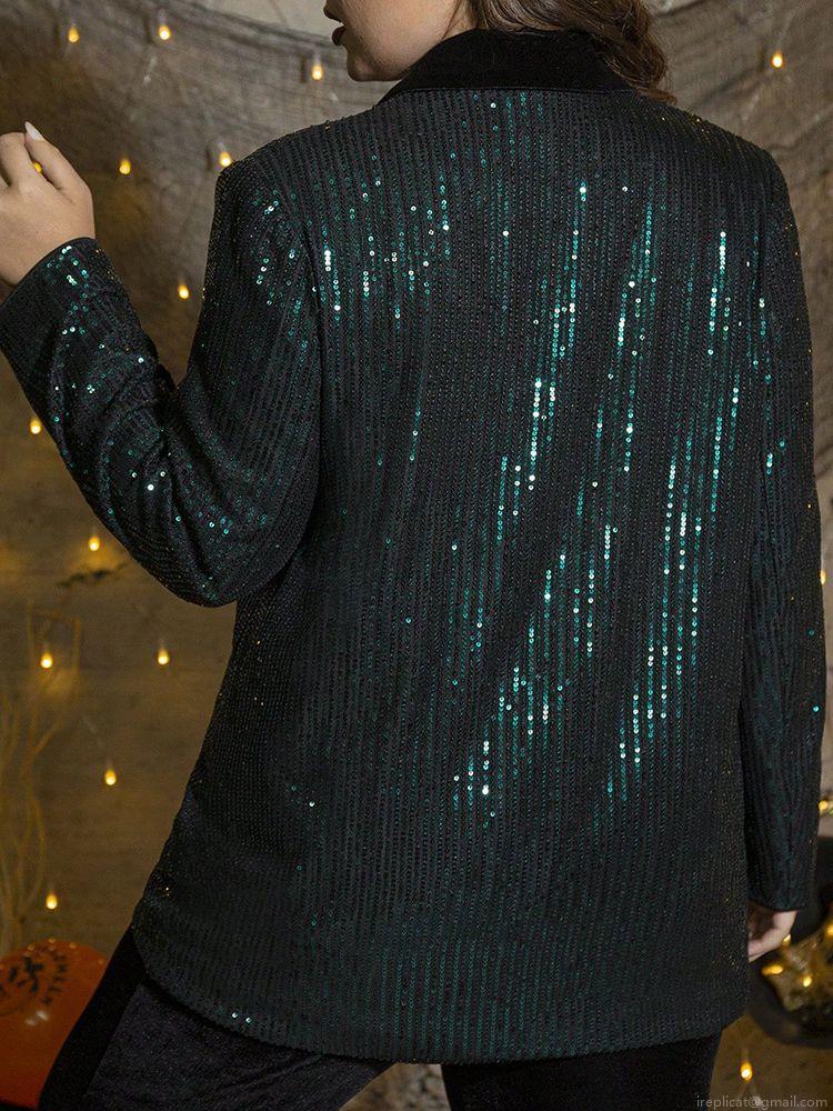 • Women's Plus Size Sequined Polyester Blazer Jacket With Velvet Lapel Glitter Long Sleeve Elegant Slim Coat For Halloween Christmas Party