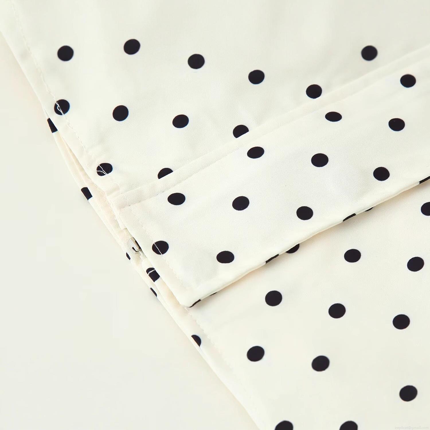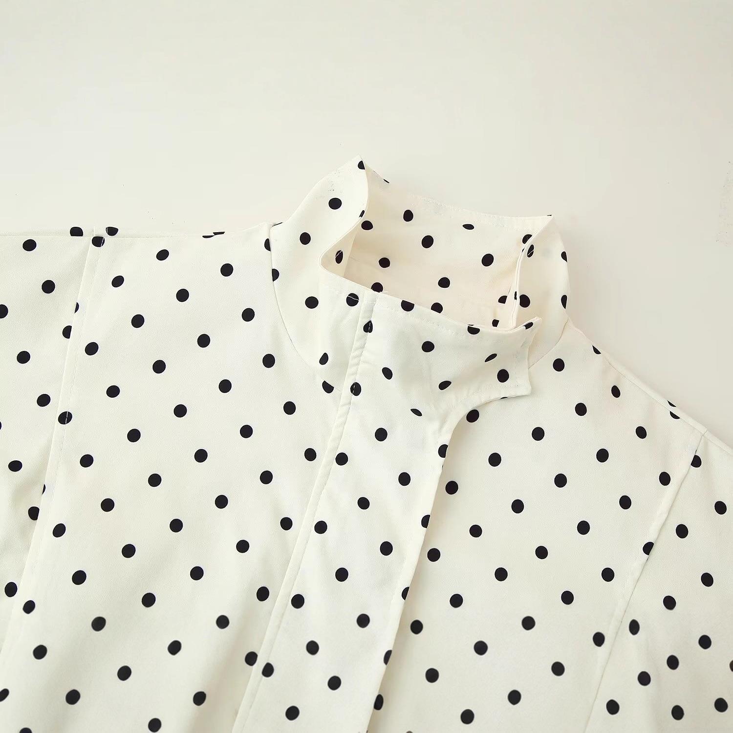 Stand-up Collar Long-sleeved Color-blocked Polka Dot