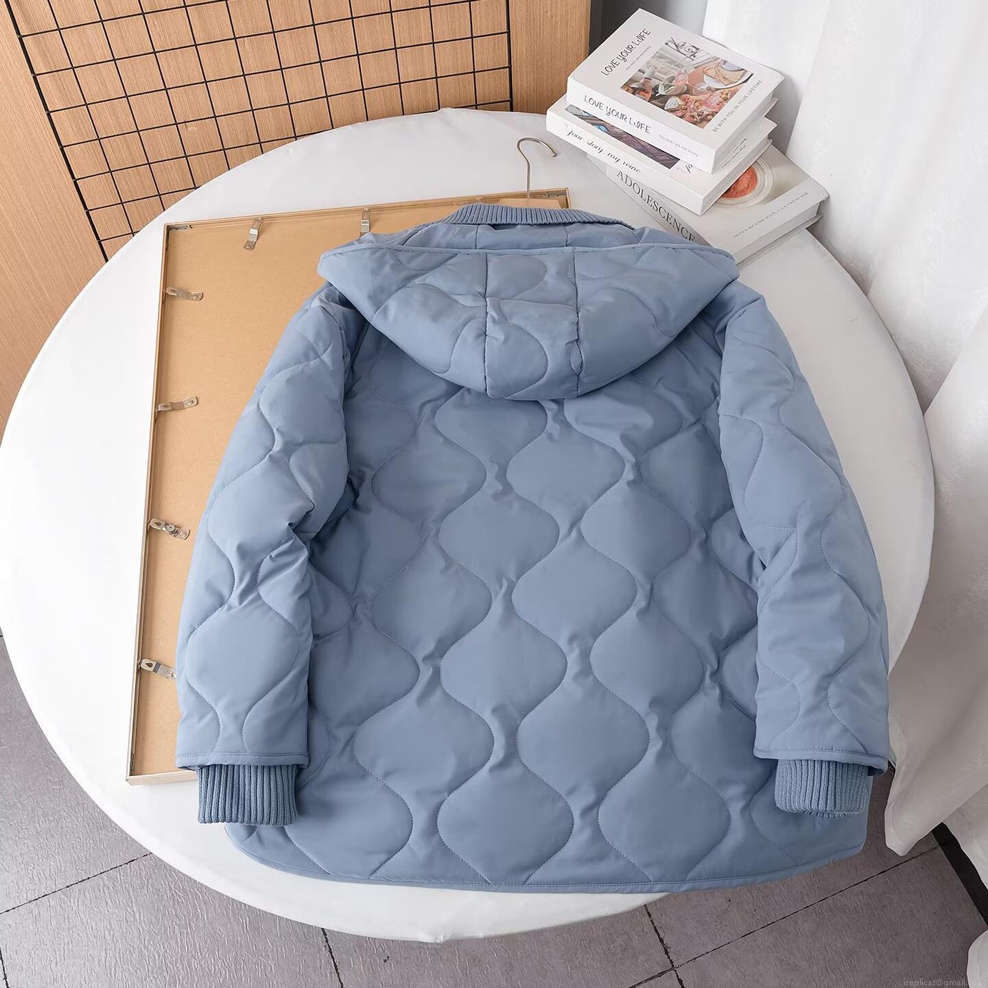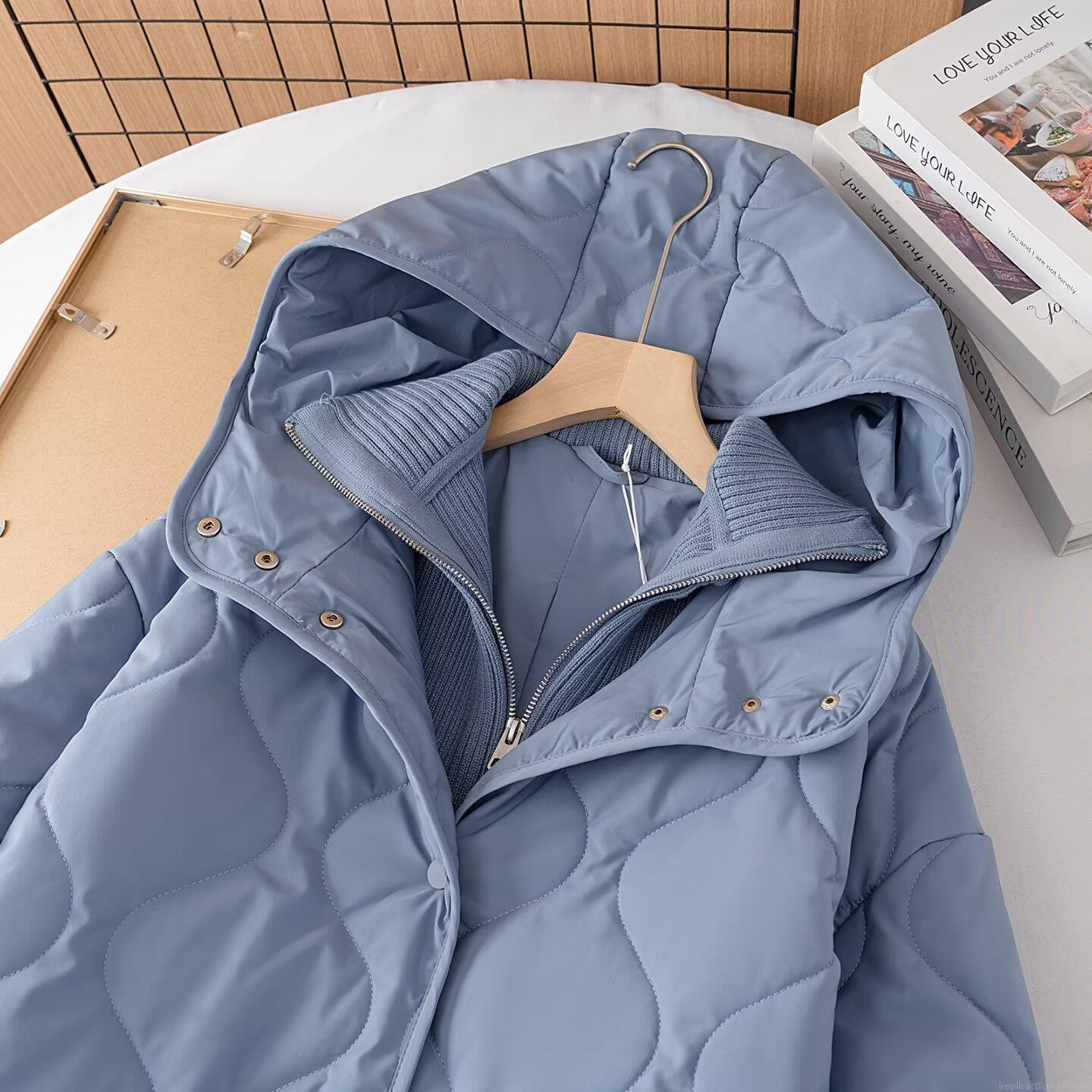 • Women's Quilted Hooded Jacket Lightweight Cotton Padded Coat With Rib Knit Cuffs Casual Loose Spliced Wave Quilted Autumn Winter Outwear For Women