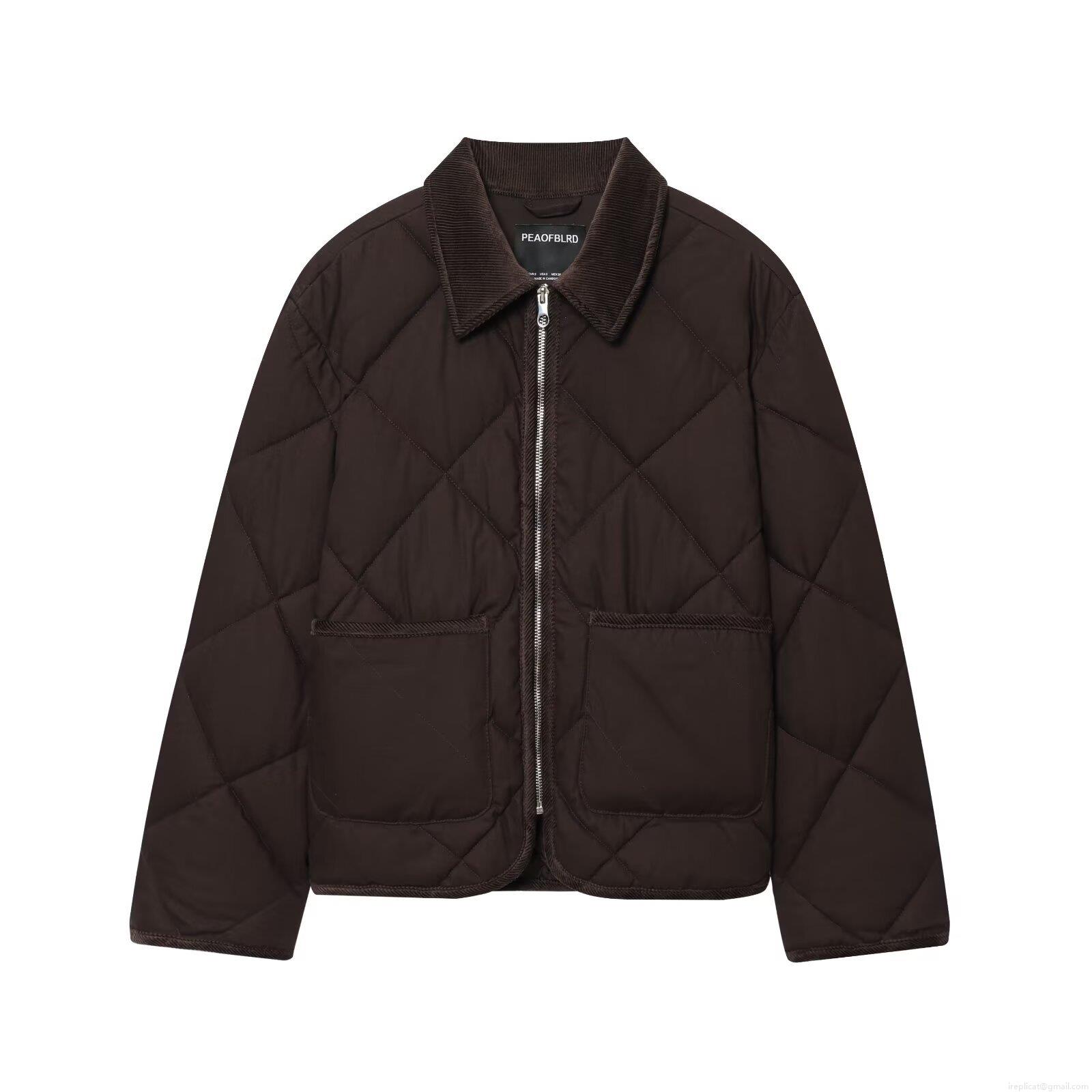Solid Color, Splice, Pocket, Quilting, Diamond, Corduroy Collar
