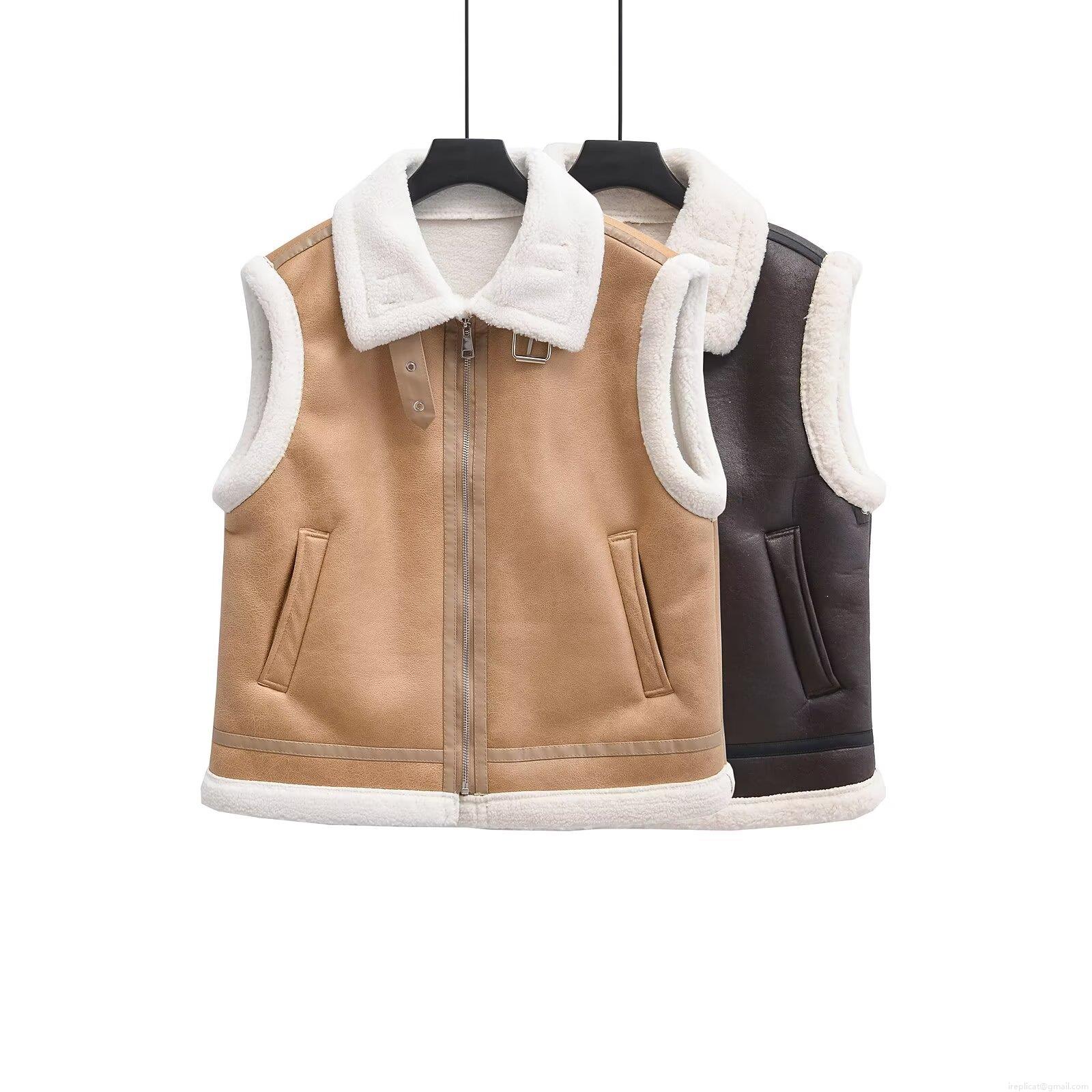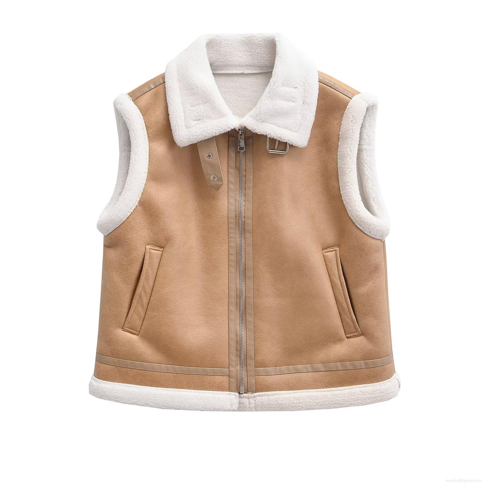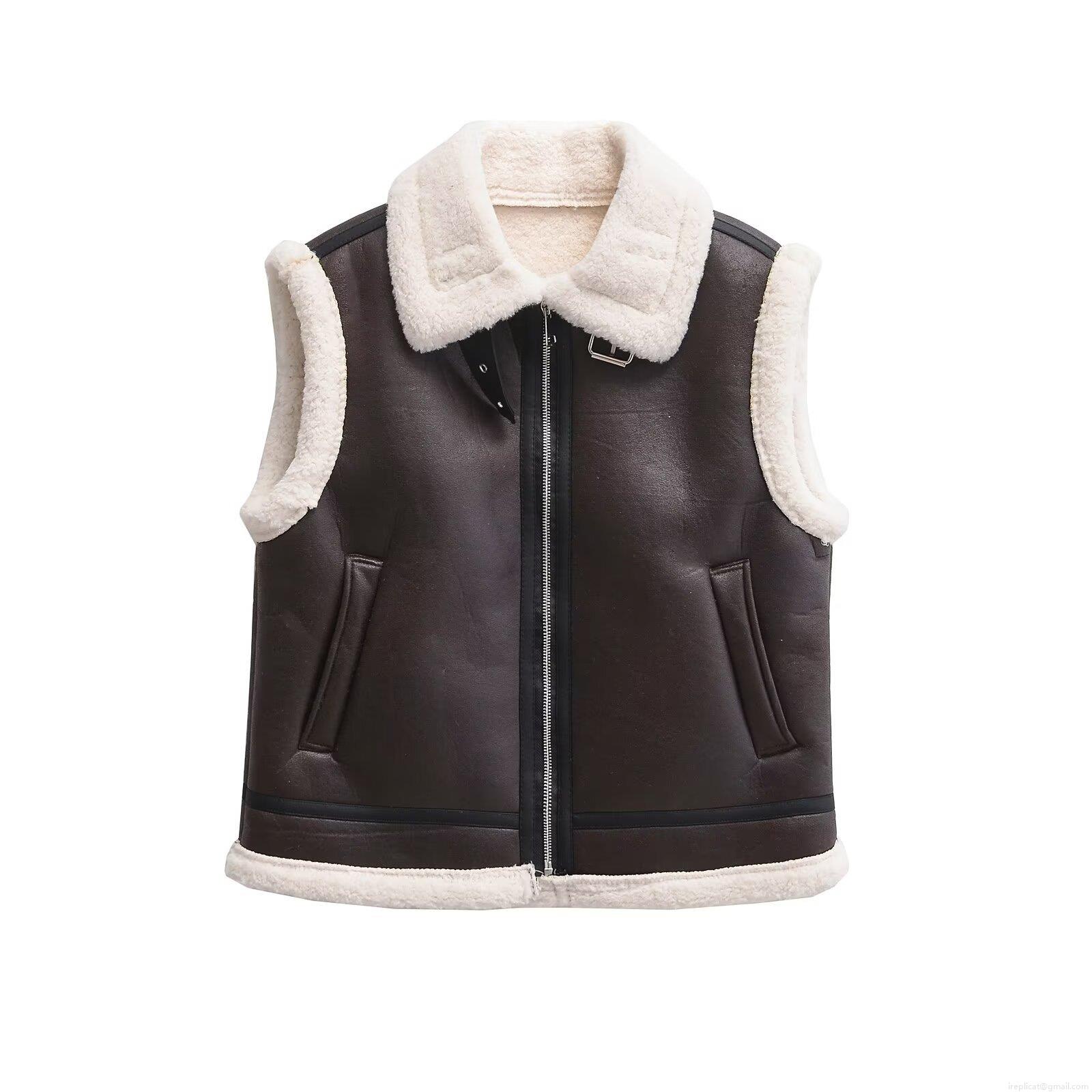 • Women's Retro Moto Faux Shearling Vest Sleeveless Faux Leather Suede Biker Jacket Warm Oversized Fleece Lined Waistcoat With Metal Zipper