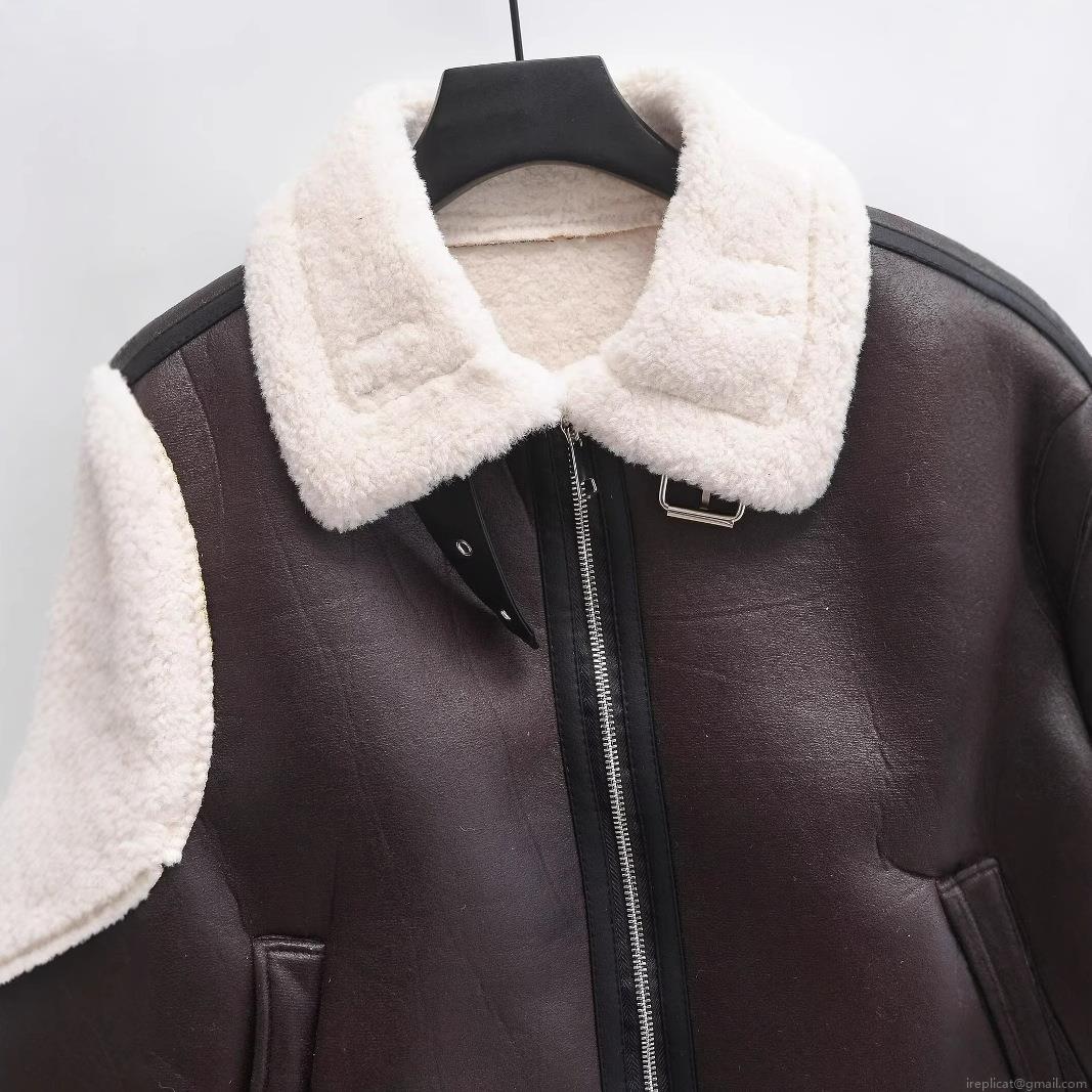 Color Blocking, Fur, Metal Zipper, Lychee Texture, Leather Buckle, Lambswool Lapel