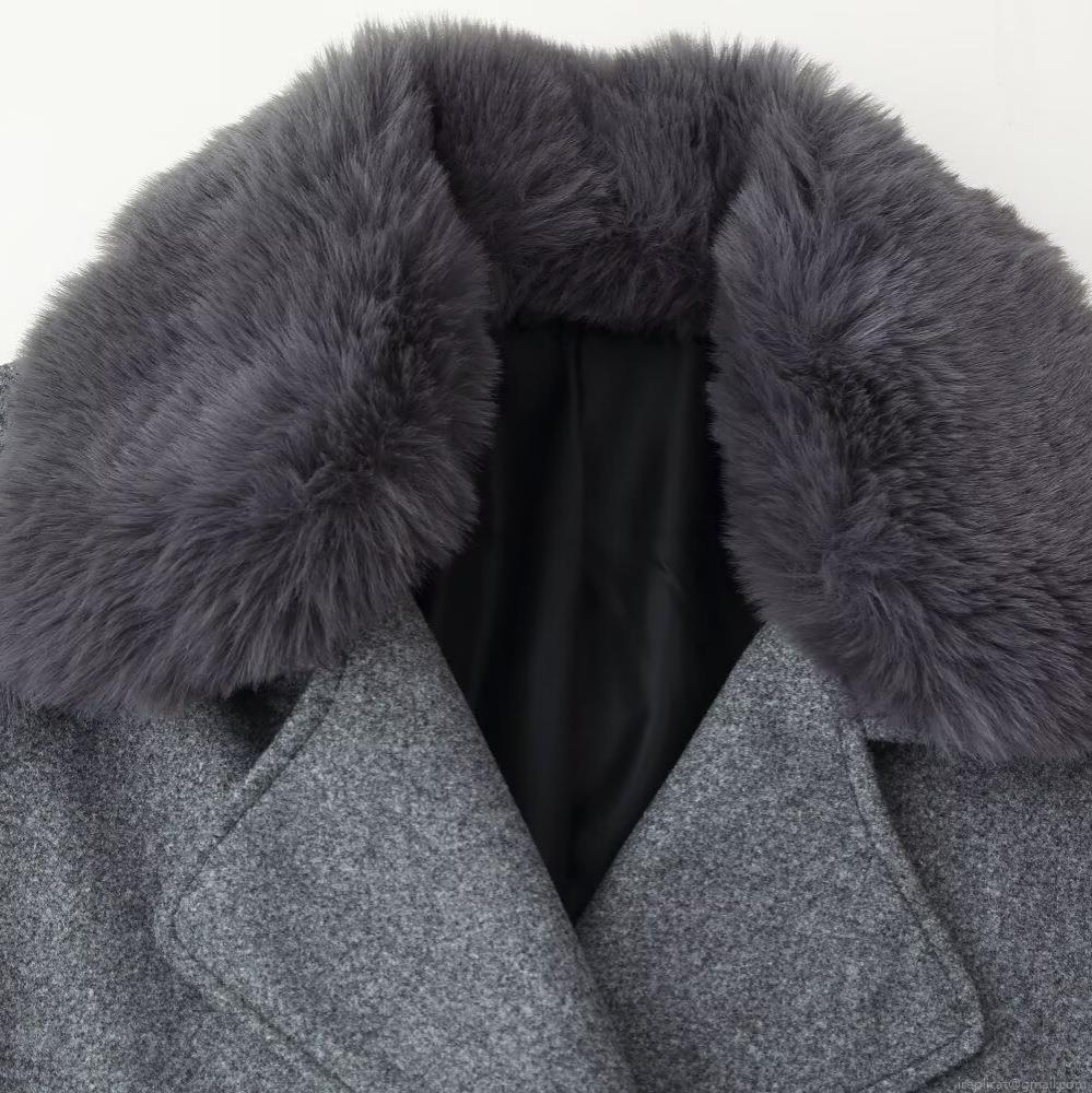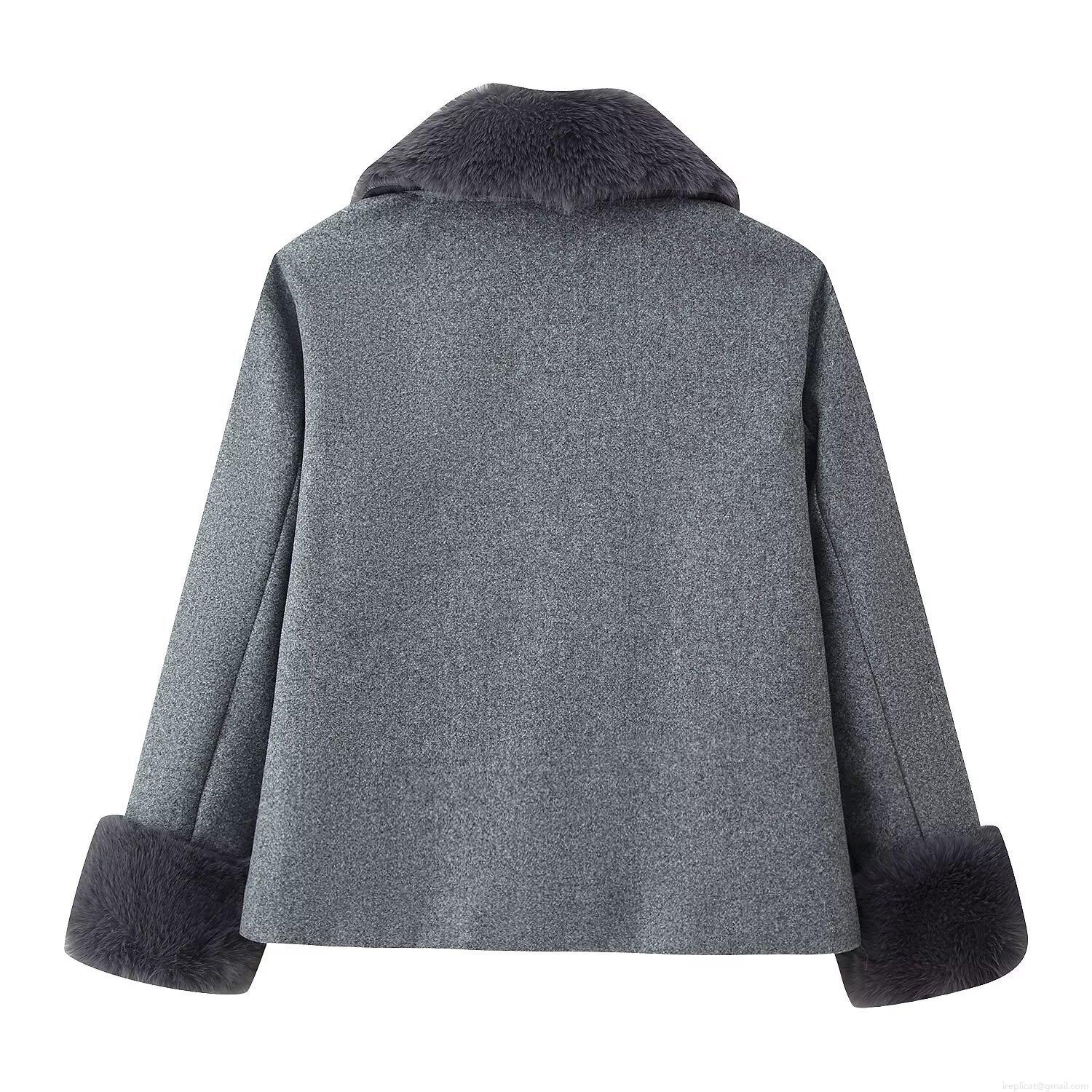 • Women's Short Woolen Coat Elegant Faux Fur Collar Thick Jacket Solid Color Long Sleeve Outwear For Winter Office Lady Daily Warm Overcoat