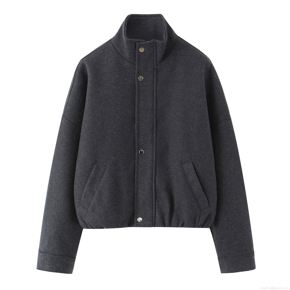 • Women's Stand Collar Flight Jacket Woolen Texture Polyester Short Bomber Jacket Streetwear Casual Zipper Snap Button Coat For Autumn Winter