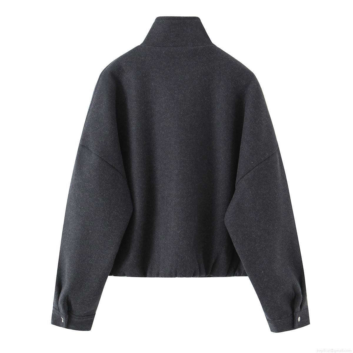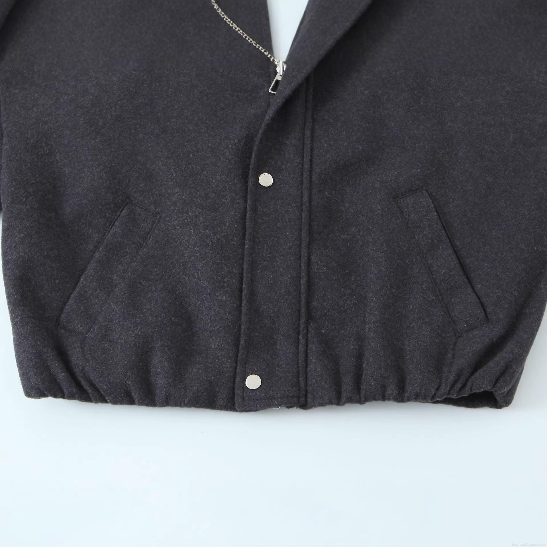 Women's Stand Collar Flight Jacket Woolen Texture Polyester Short Bomber Jacket Streetwear Casual Zipper Snap Button Coat For Autumn Winter
