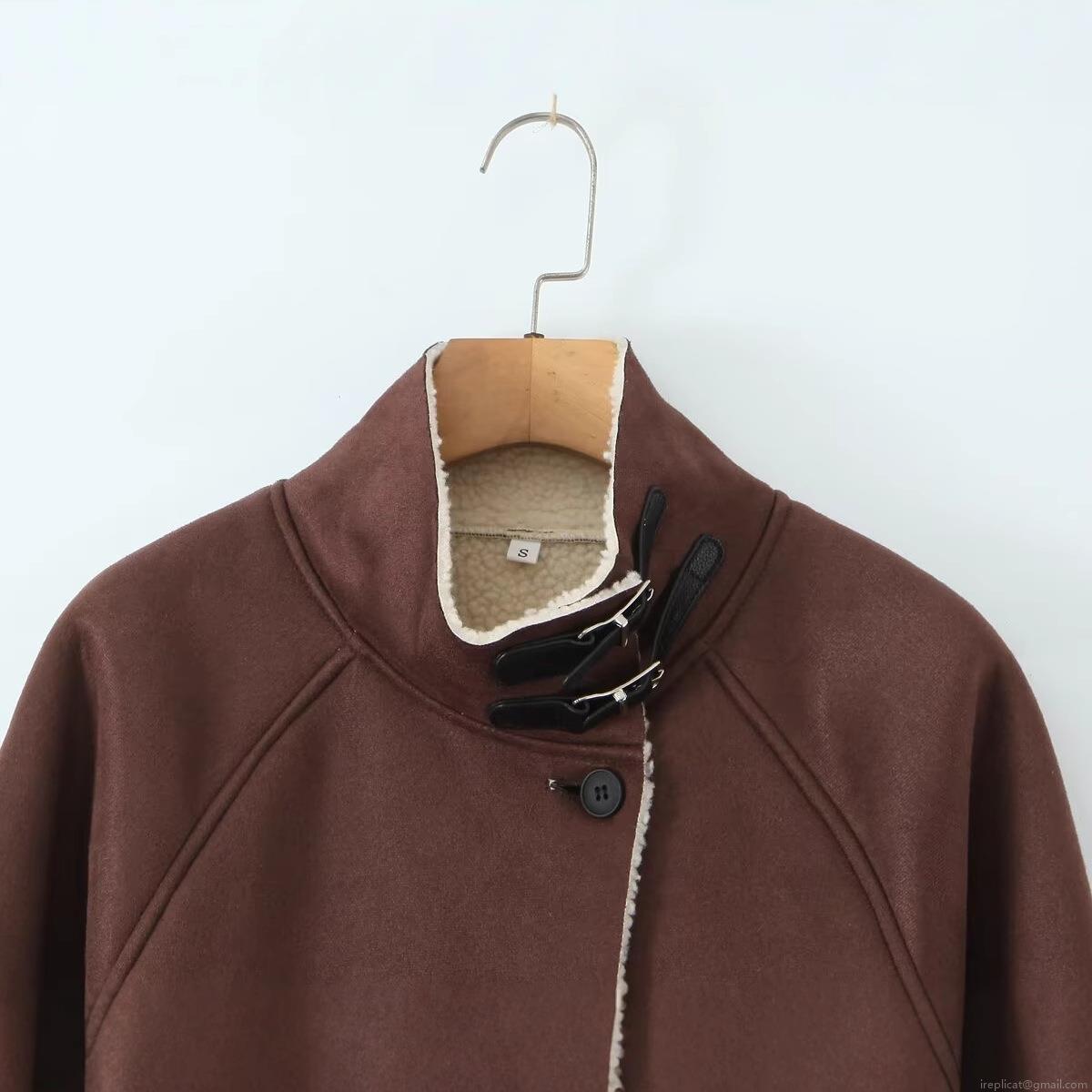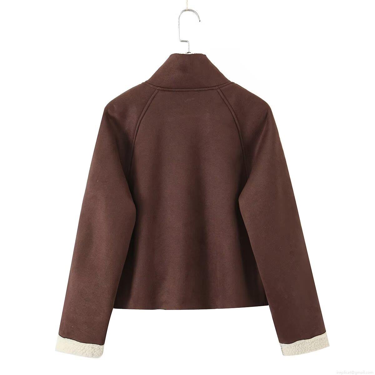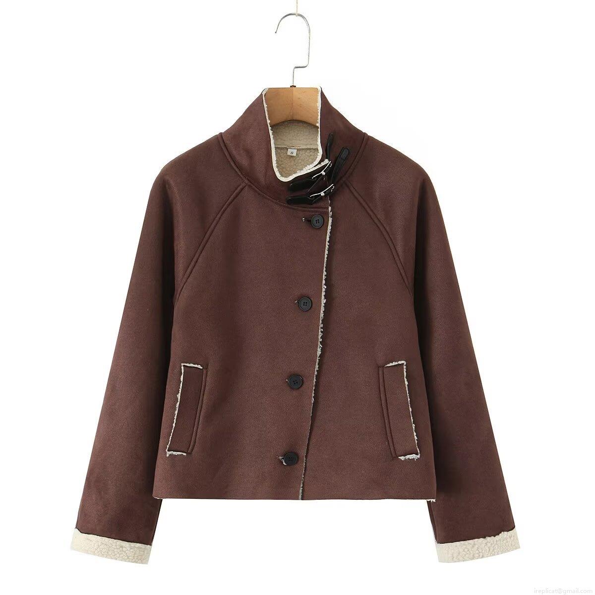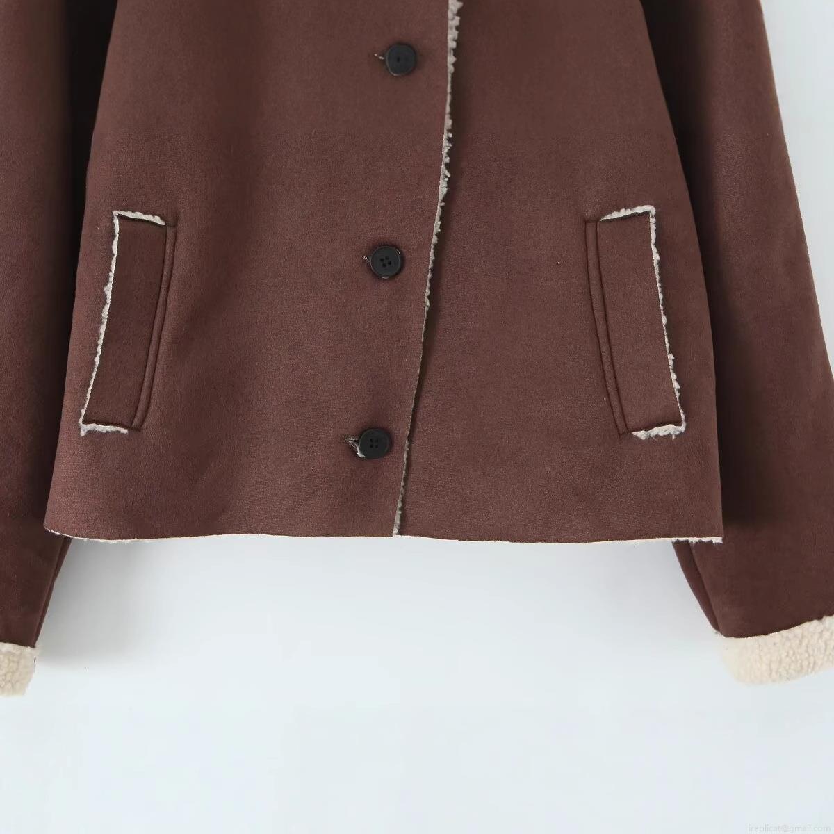 • Women's Suede Jacket Fleece Lined Faux Lamb Wool Composite Vintage High Neck Long Sleeve Button Up Warm Outerwear Casual Retro Women Short Cotton Padded Coat