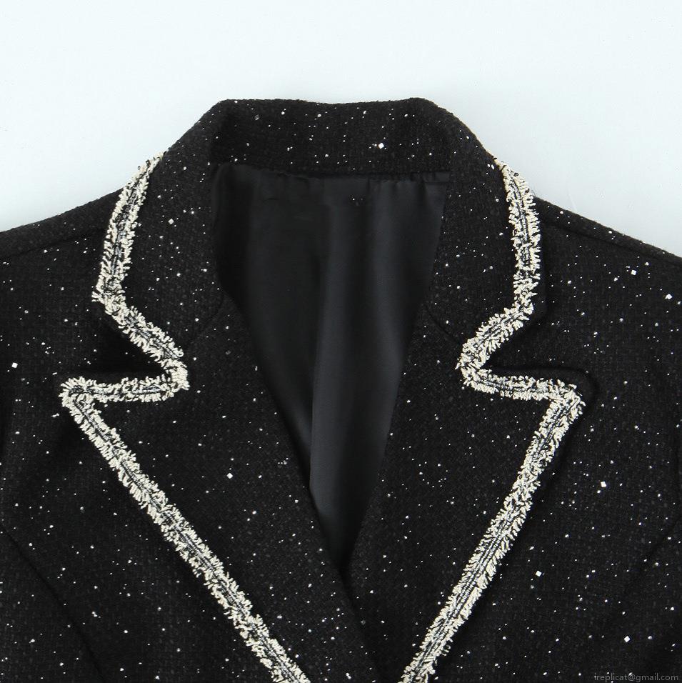 • Women's Tweed Sequin Blazer Jacket Elegant Double Breasted Polyester Blend Contrast Trim Tassel Detail Office Work Formal Commuting Coat