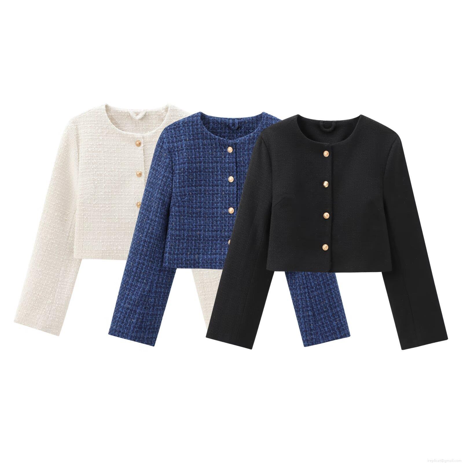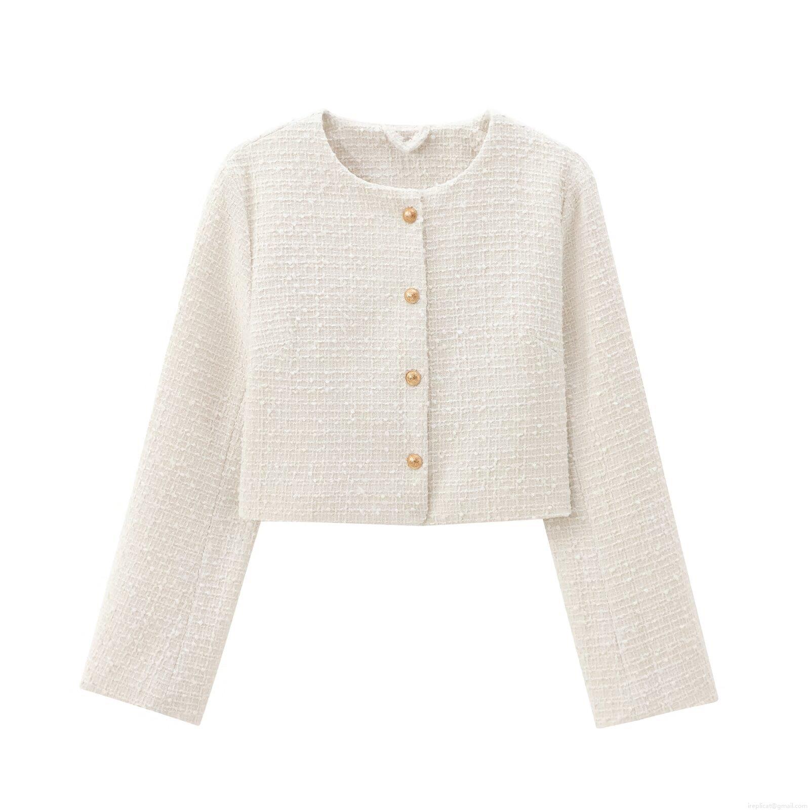• Women's Tweed Short Jacket Elegant Boucle Round Neck Single Breasted Outerwear With Gold Metal Buttons For Autumn Winter Daily Streetwear