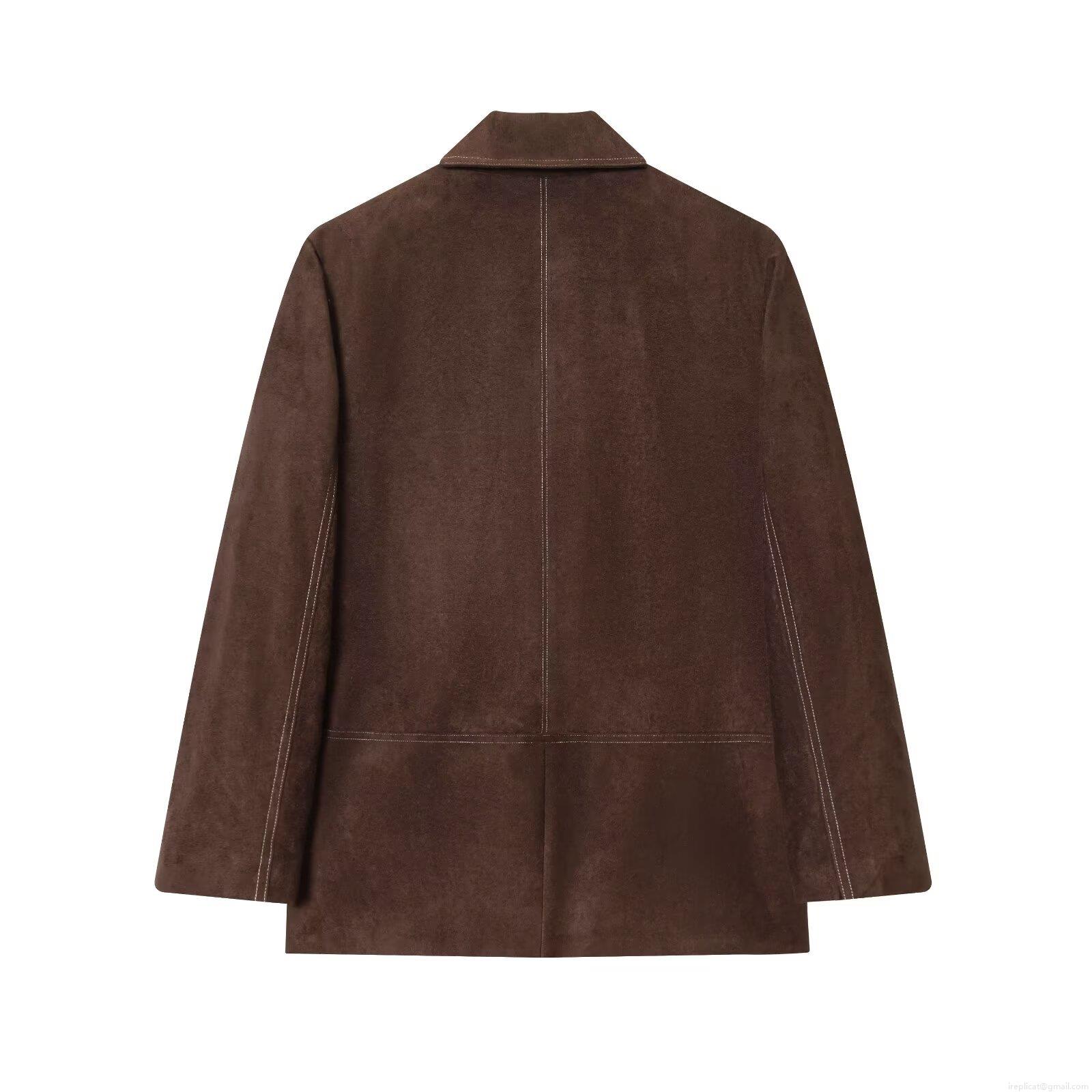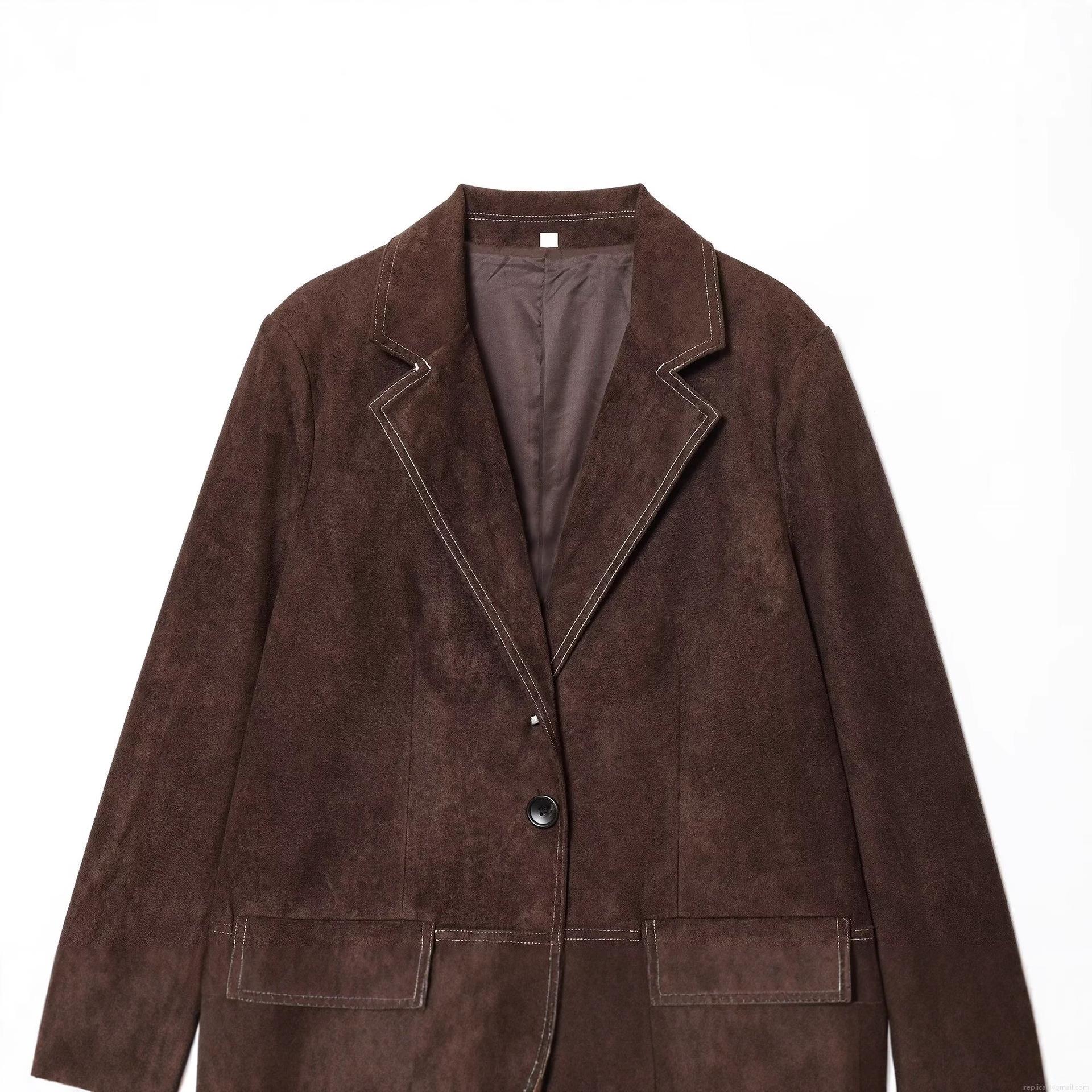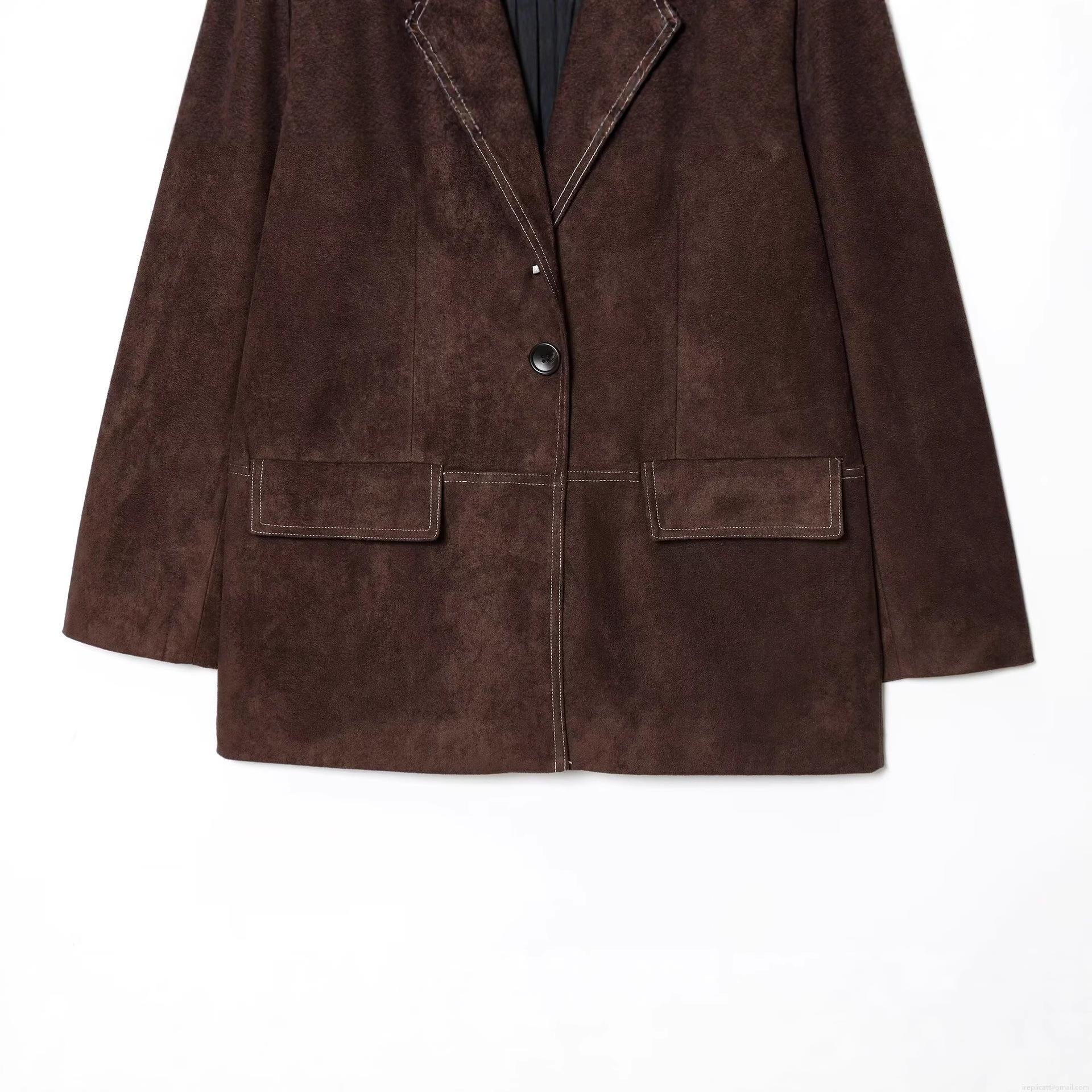 • Women's Vintage Faux Suede Blazer Jacket Contrast Stitching Lapel Long Sleeve Straight Suit Coat With Pockets Casual Office Outerwear For Ladies