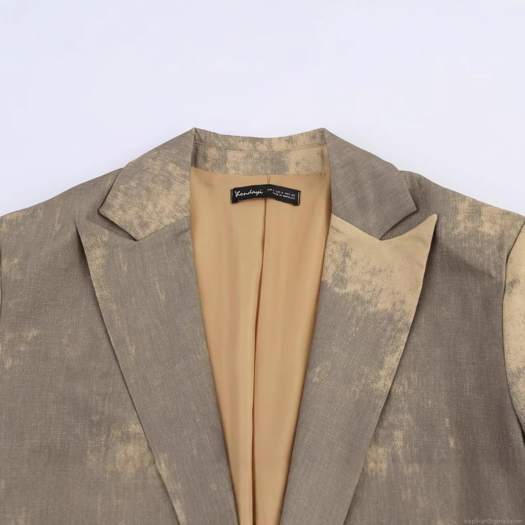 Women's Vintage Printed Blazer Jacket Long Sleeve Single Button Polyester Outerwear Streetwear Marble Texture Suit Coat For Spring Autumn