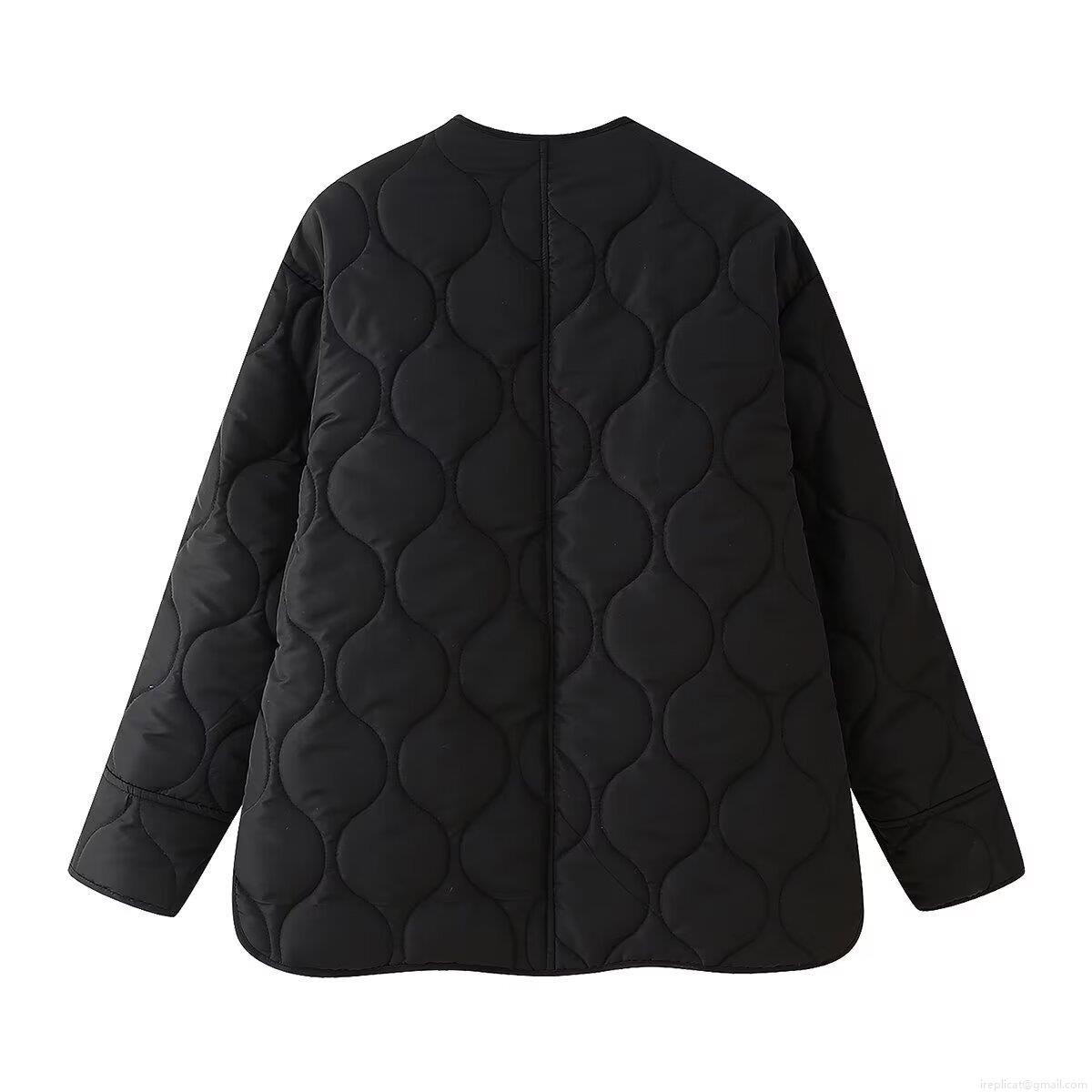 • Women's Wave Quilted Padded Jacket 100% Polyester Lightweight Round Neck Snap Button Long Sleeve Outerwear Coat For Daily Casual Wear Street Style