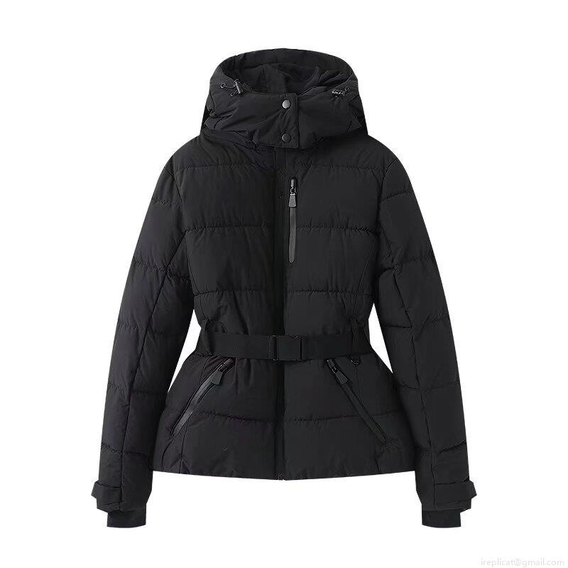 • Women's Winter Hooded Cotton Padded Ski Jacket With Belt Slim Fit Windproof Waterproof Printed Metallic Puffer Coat Outdoor Fashion Parka