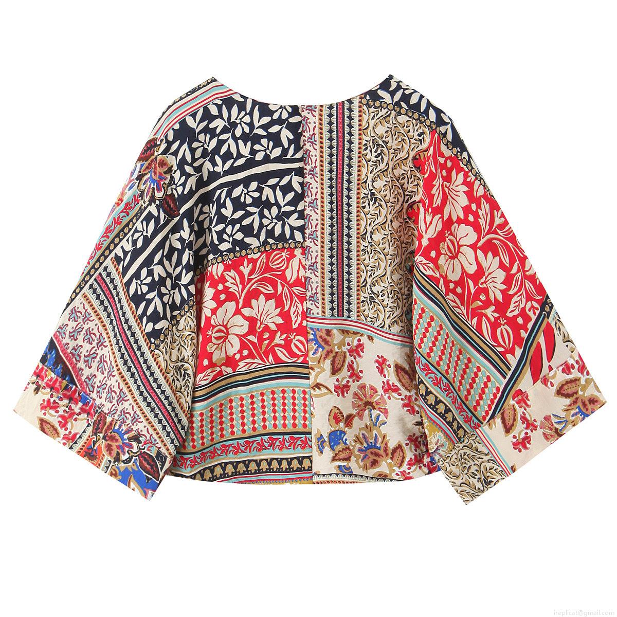 Geometric Shapes, Flowers, Color Blocking, Lace, Wooden Bead Decorations, Bell Sleeves, Patchwork Print