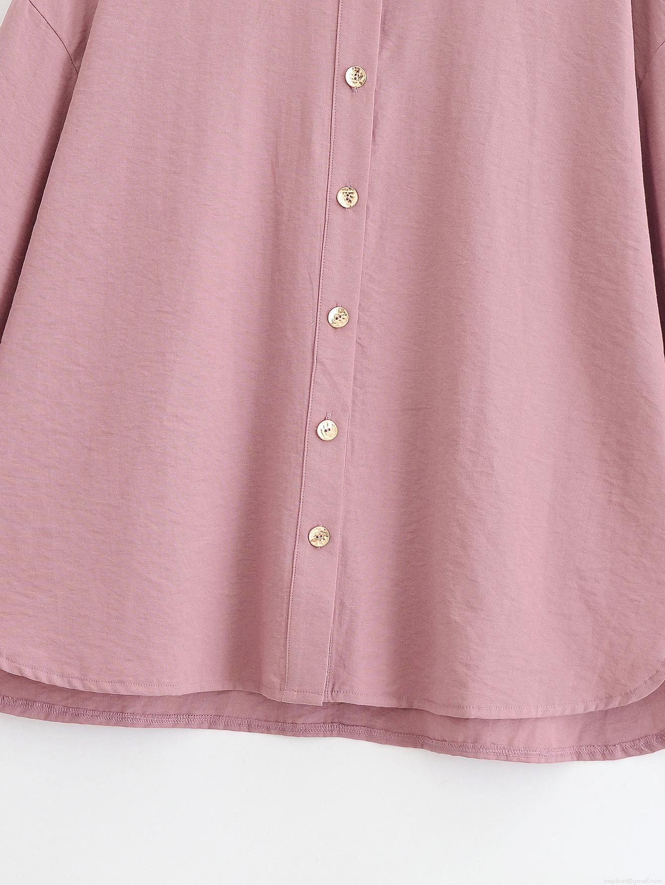 Casual Women Fashion Two Piece Pants Set Polyester Long Sleeve Shirt High Waist Wide Leg Pants With Belt Dusty Pink Mauve Outfit Spring Autumn Office Style