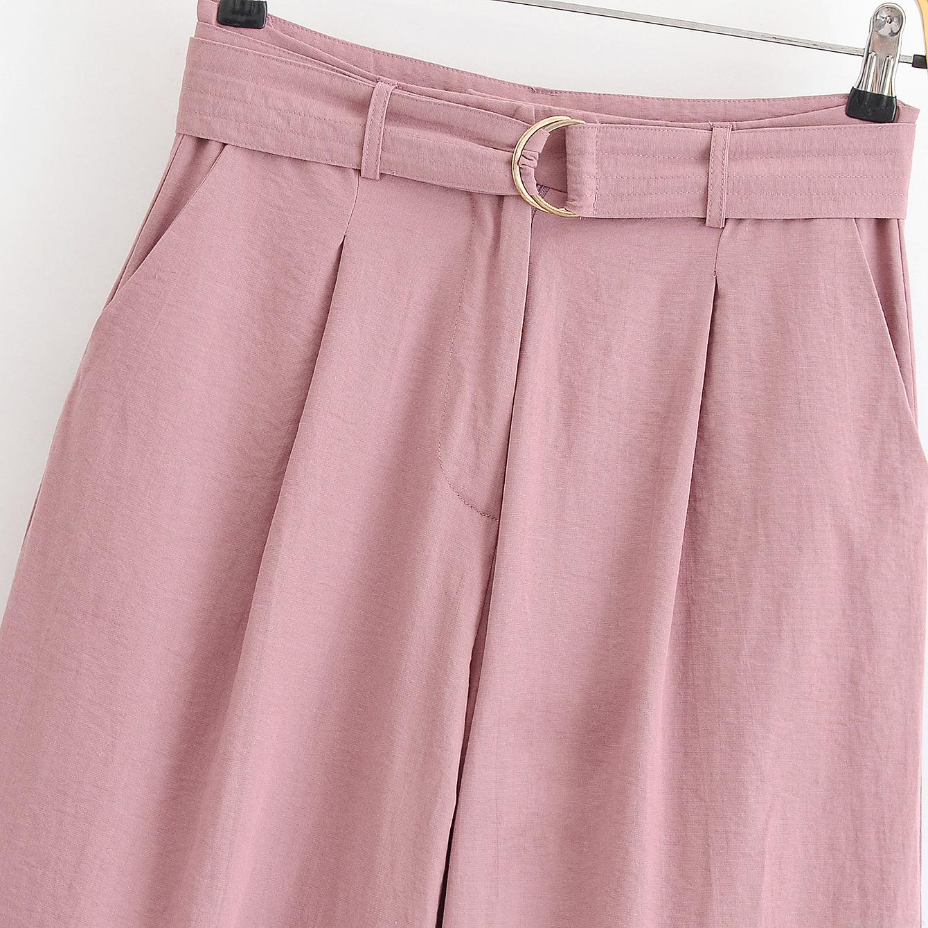 • Casual Women Fashion Two Piece Pants Set Polyester Long Sleeve Shirt High Waist Wide Leg Pants With Belt Dusty Pink Mauve Outfit Spring Autumn Office Style