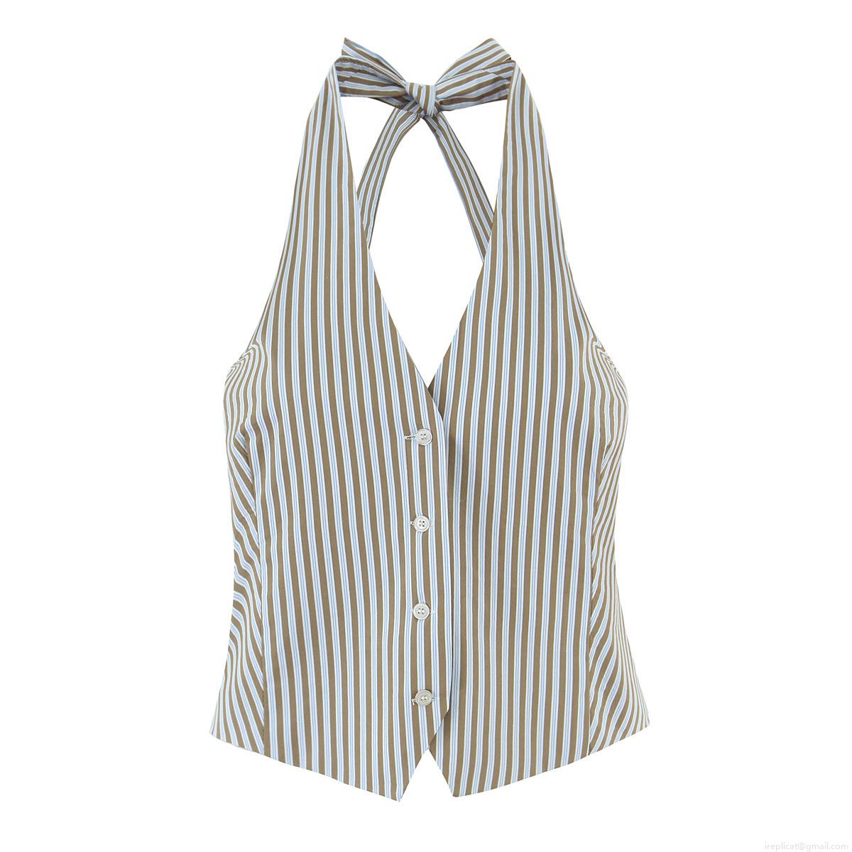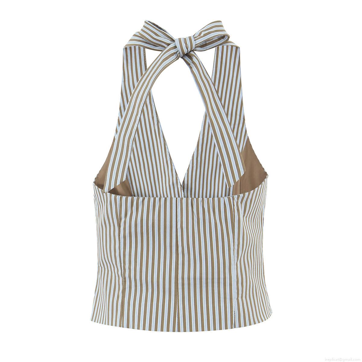 Cotton Blend Women's Summer Striped Halter Neck Button Top And Wide Leg Pants Set Sleeveless Backless Streetwear Two Piece Outfit For Ladies