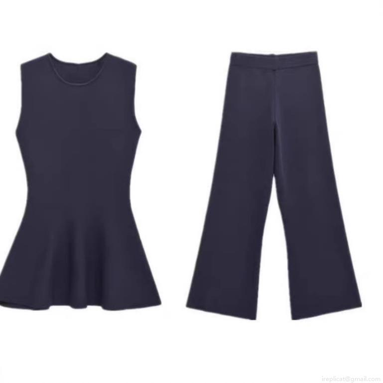 • Elegant Knit Two Piece Set Sleeveless Peplum Top and Wide Leg Pants Solid Color Polyester Casual Outfits For Women Party Clubwear