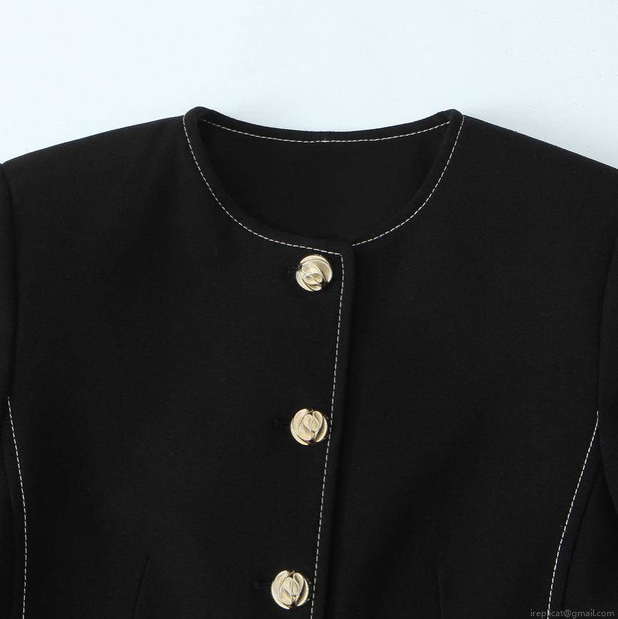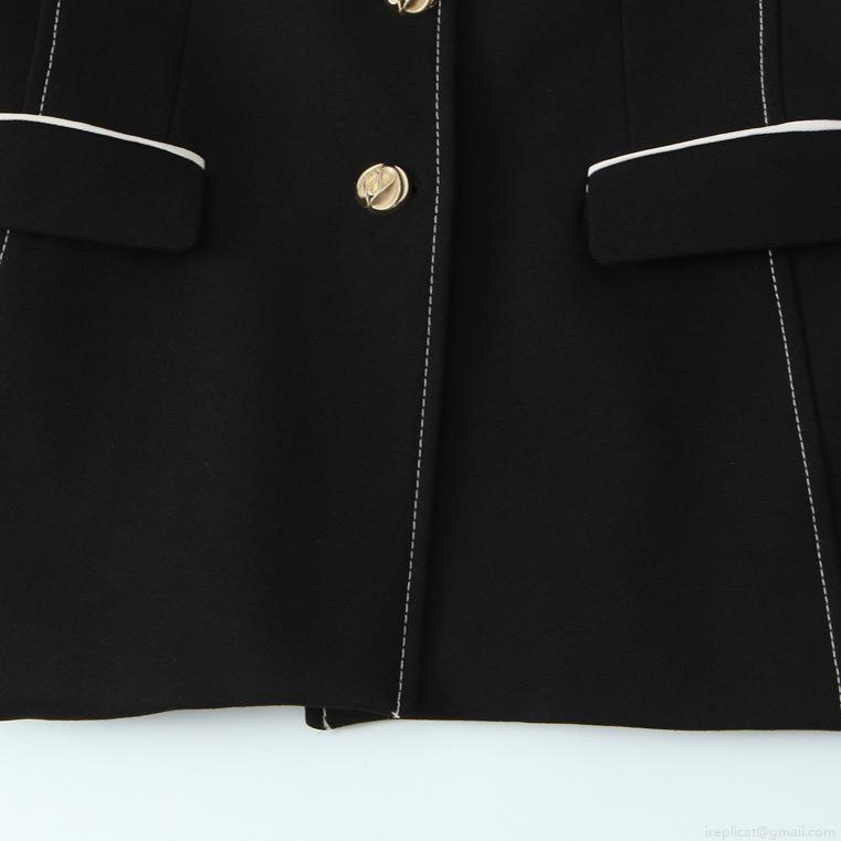 • Elegant Women Black Blazer and Shorts Two-Piece Set Contrast Trim Office Lady Long Sleeve Suit Jacket with Gold Buttons Fashion Suits