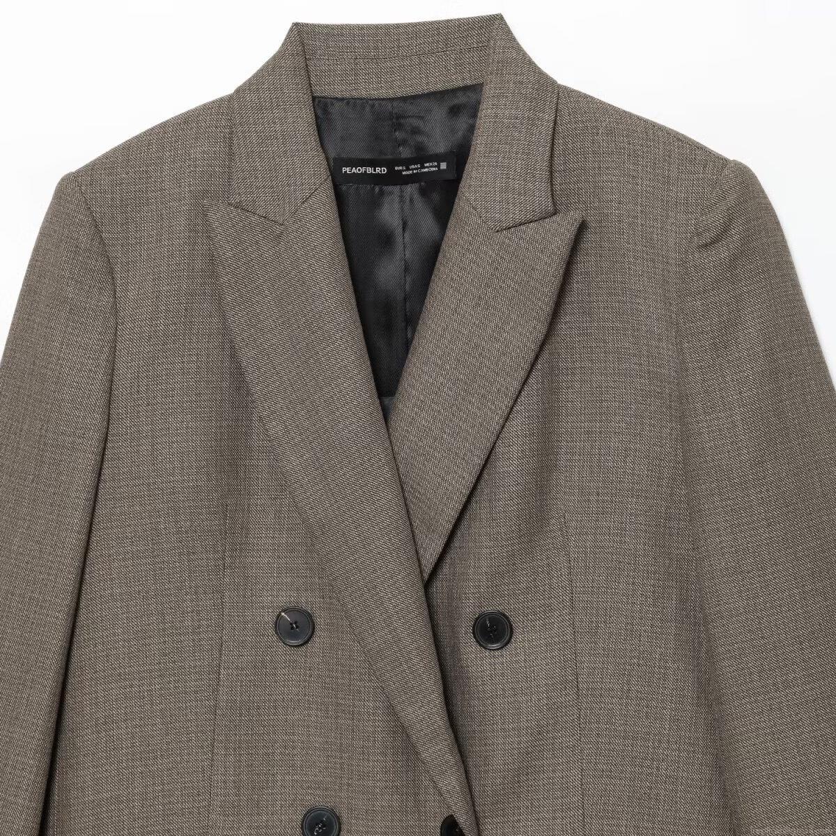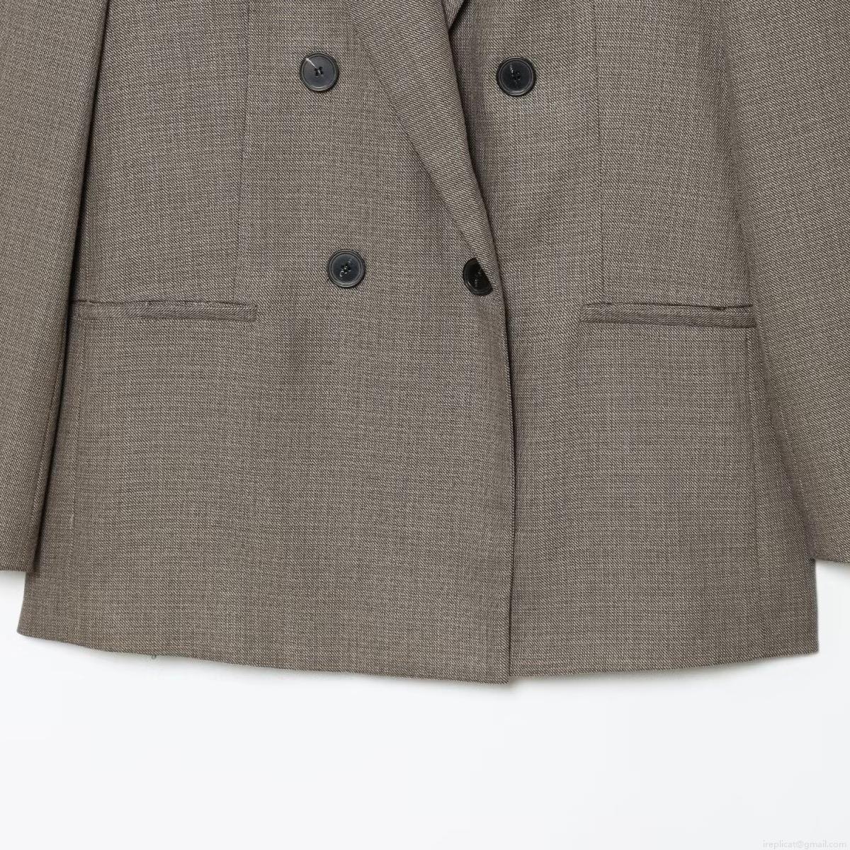 Elegant Women Brown Grey Blazer And Pants Set Double Breasted Peaked Lapel Suit Jacket With High Waisted Wide Leg Trousers Casual Business Office Commuting Outfit