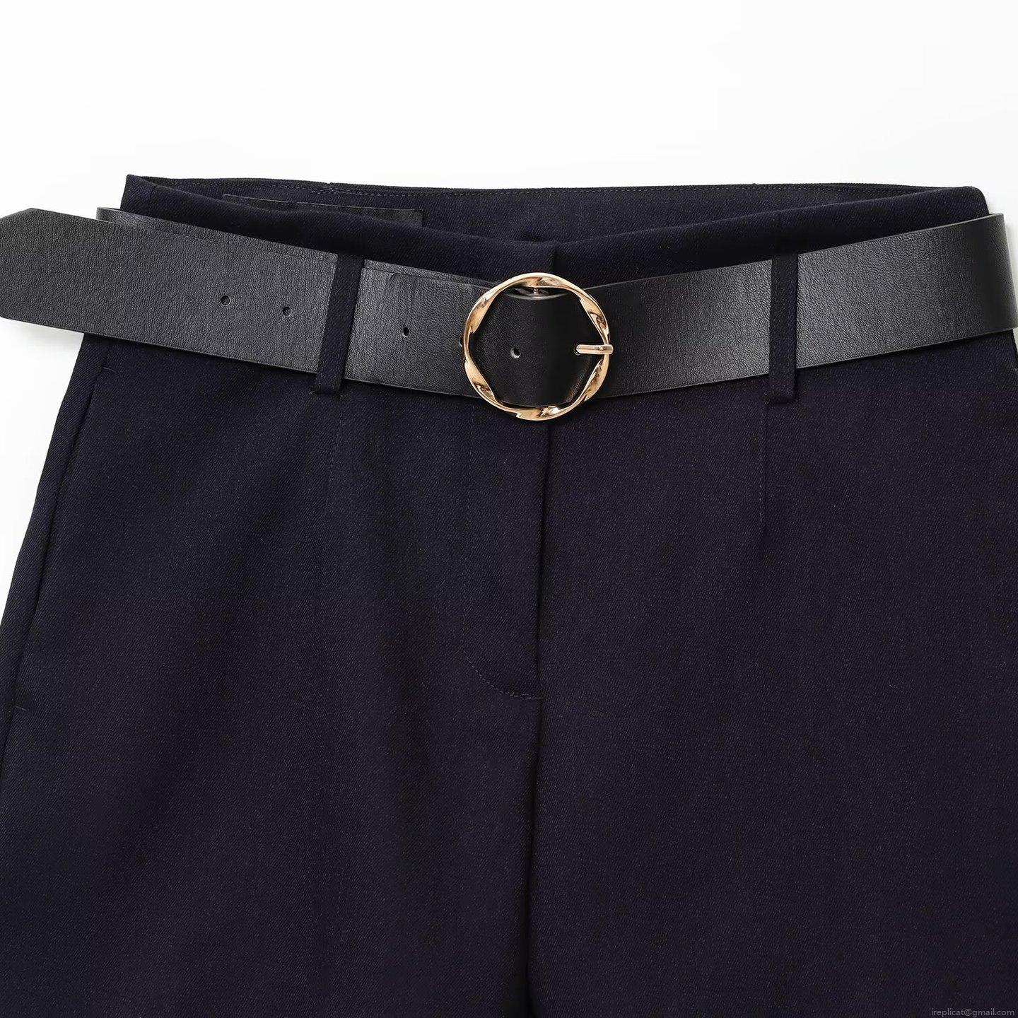 Solid Color, Belt, Gold Metal Buckle, Twill Fabric