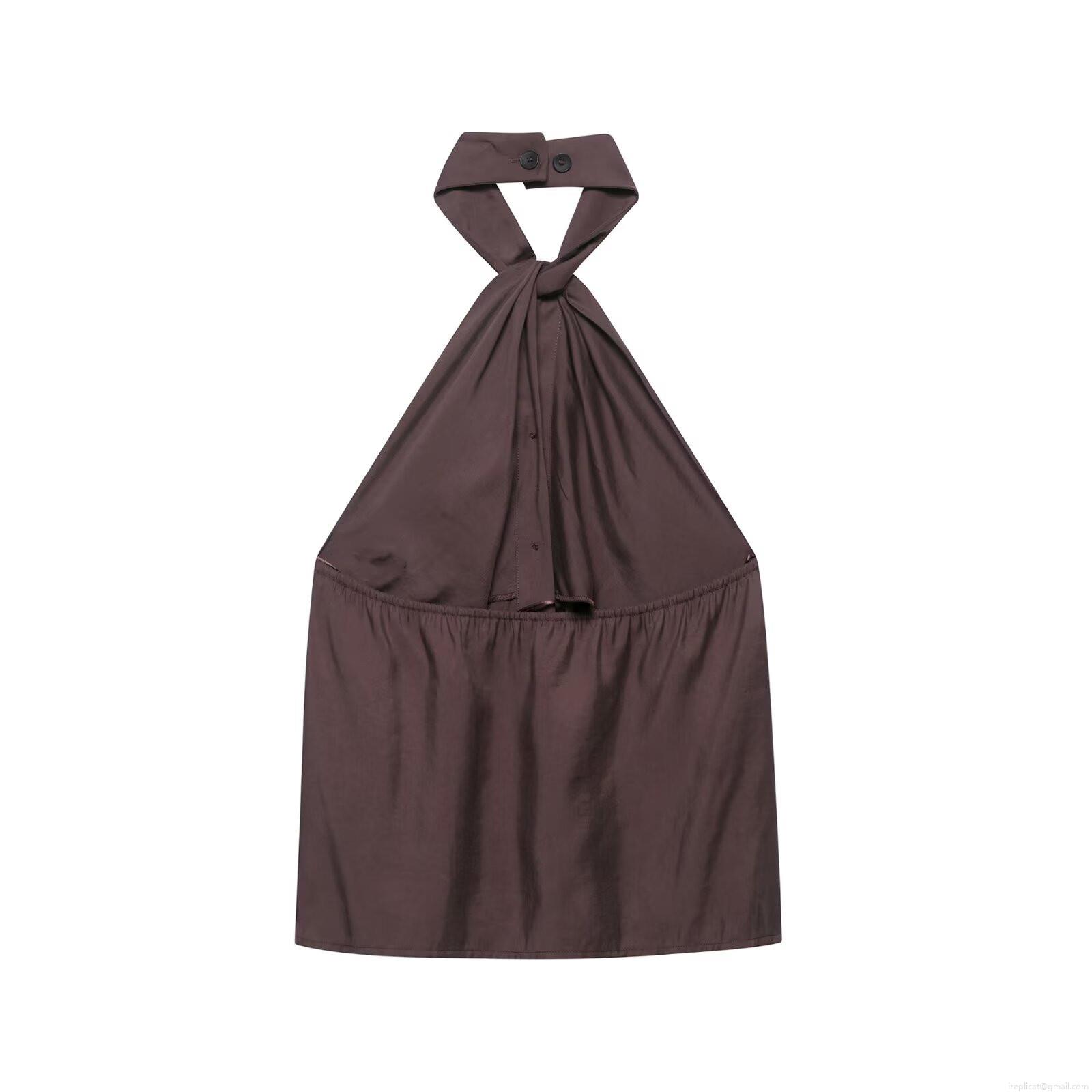 Solid Color, Buttons, Neckband, Backless, Knot, Feelings