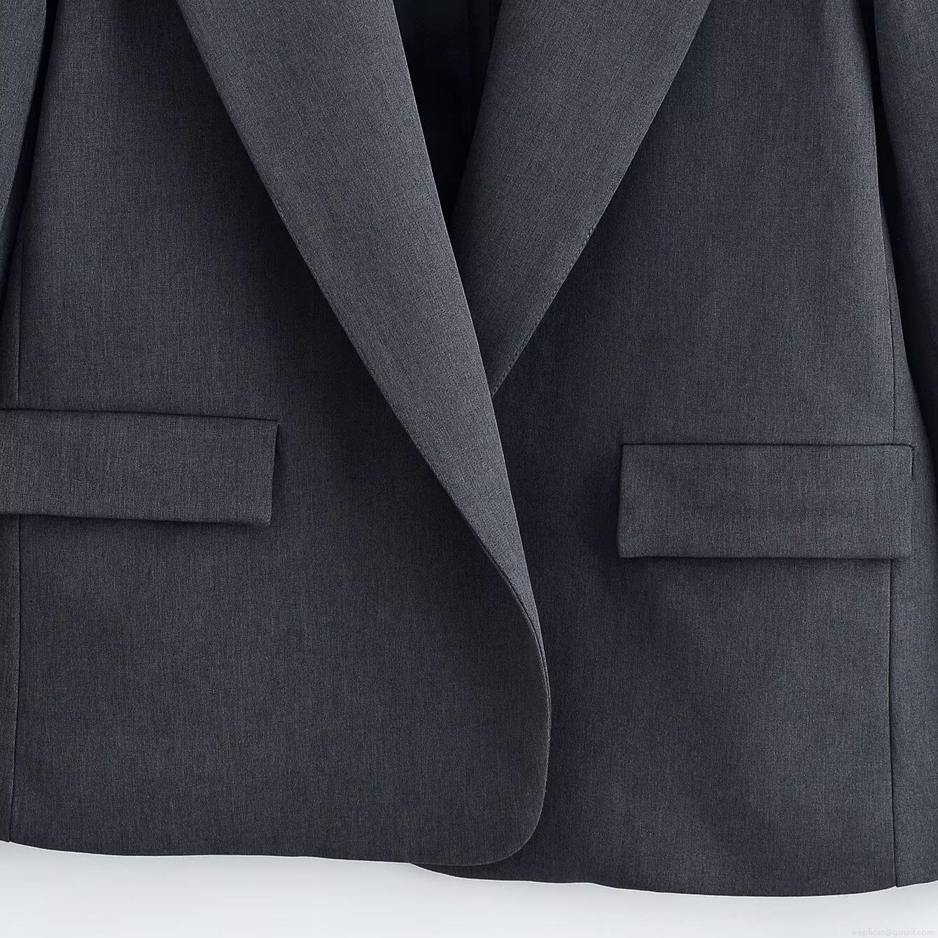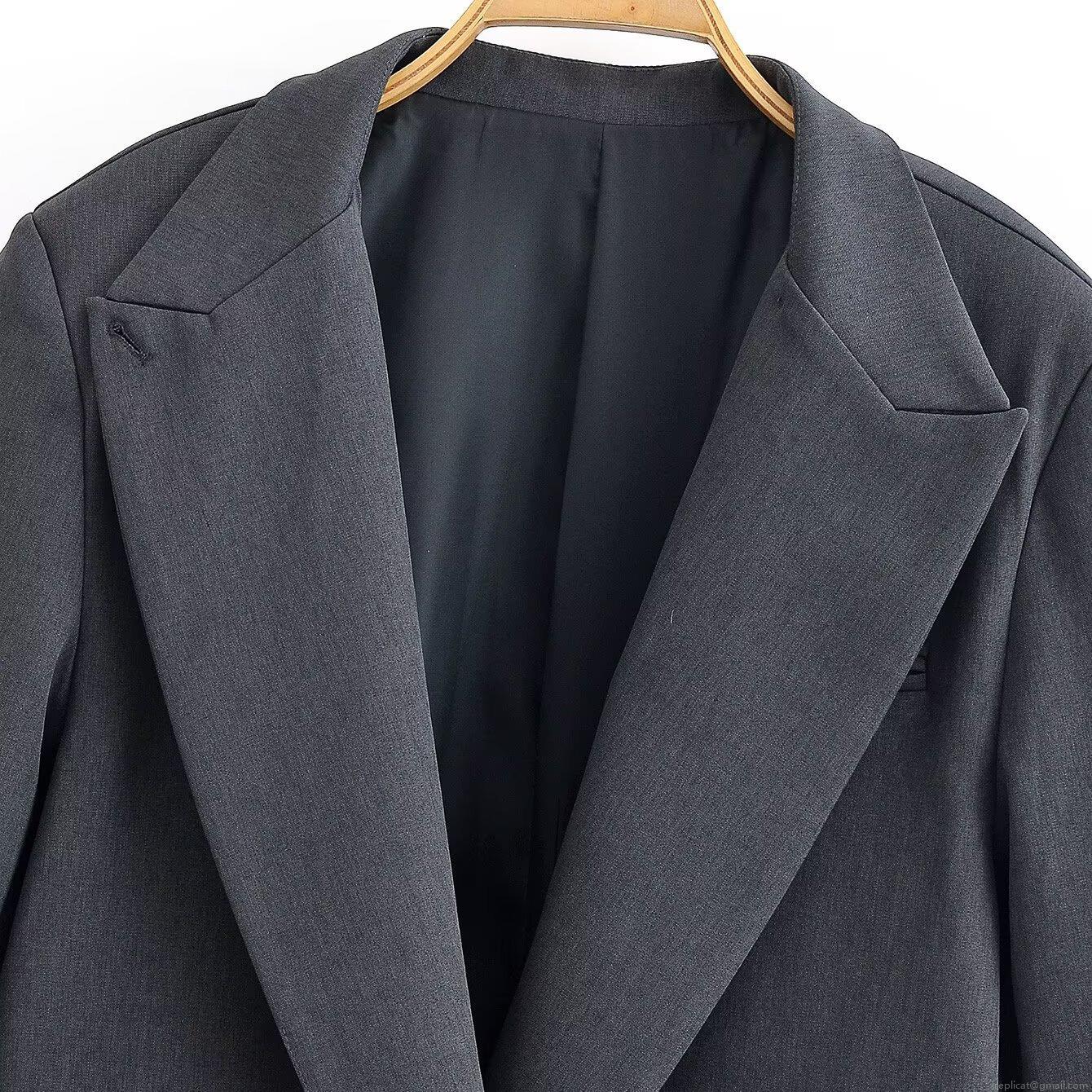 • Elegant Women's 100% Polyester Blazer Pants Set Single Breasted Dark Grey Pinstripe Wide Leg Trousers Professional Office Business Commuter Suit