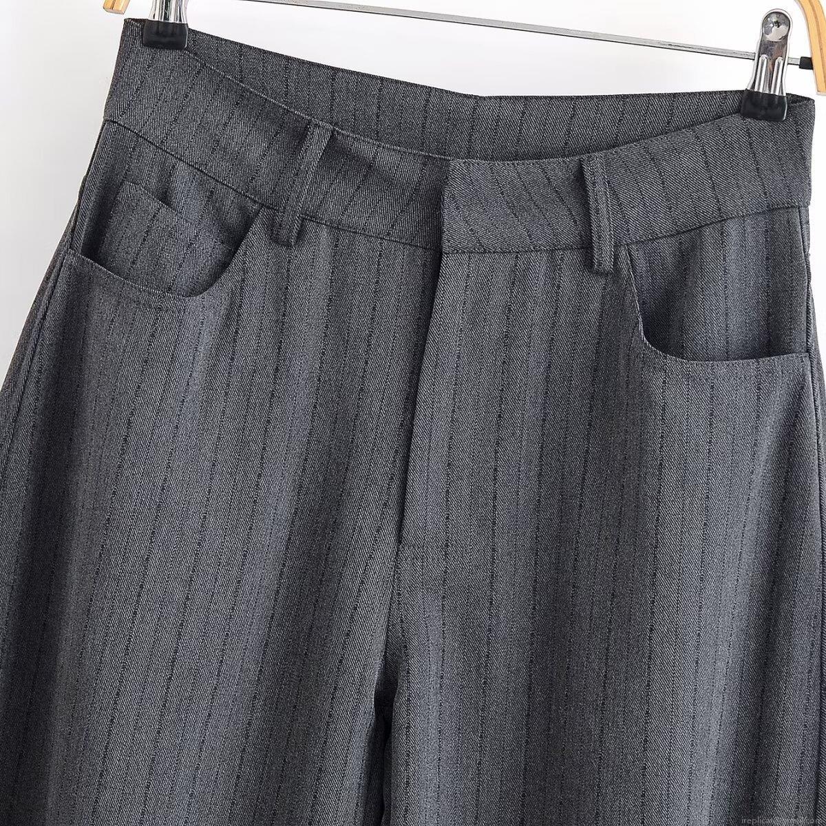 Solid Color, Pinstripes, Twill, Single-breasted, High-waisted, Vertical Fine Stripes