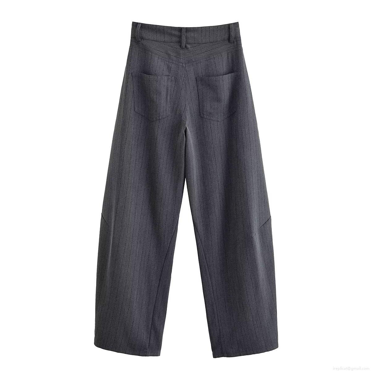 Elegant Women's 100% Polyester Blazer Pants Set Single Breasted Dark Grey Pinstripe Wide Leg Trousers Professional Office Business Commuter Suit