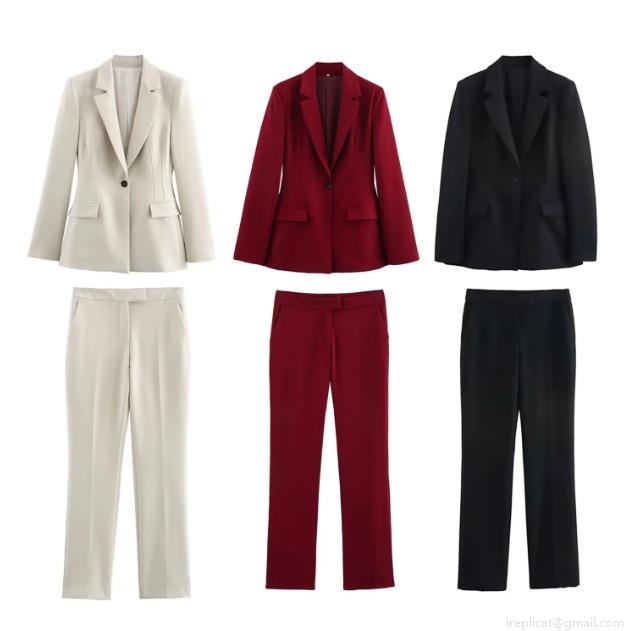 • Elegant Women's 2 Piece Blazer Suit Set Single Breasted Notched Lapel Blazer with Flare Pants Polyester Solid Color Office Commuting Professional Outfit