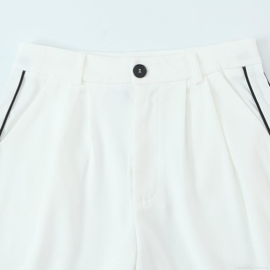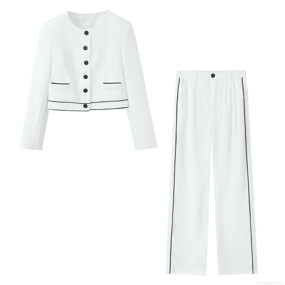 • Elegant Women's 2 Piece Suit Set Contrast Trim Round Neck Short Blazer Jacket and High Waist Straight Leg Trousers Commute Office Wear Polyester Spandex Outfit
