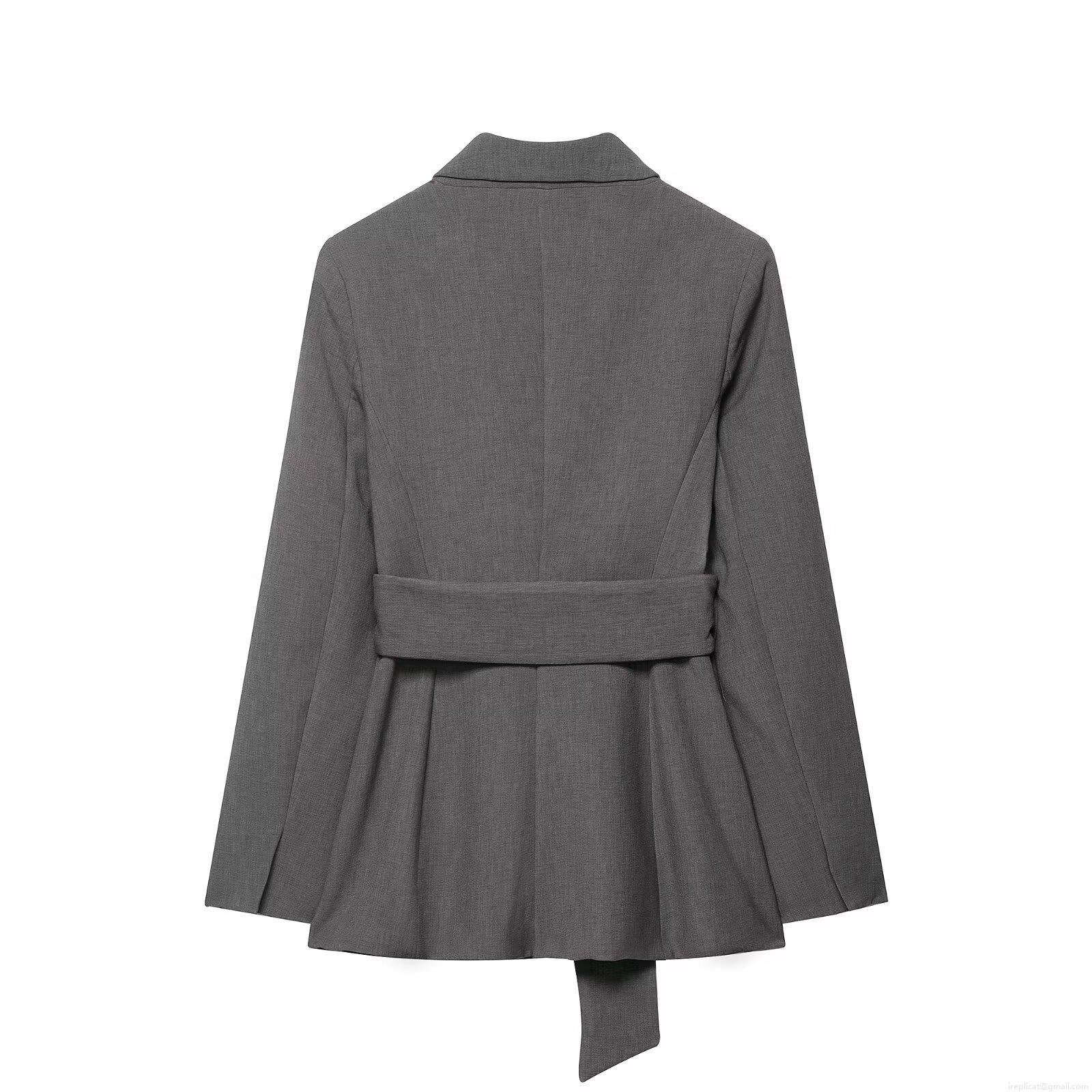 Elegant Women's Commuter Business Suit Set Polyester Belted Blazer Jacket and Matching Trousers Office Lady Formal Two Piece Outfits